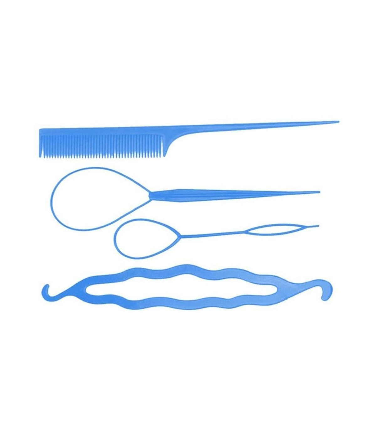 4pcs Set Styling Clip Bun Maker Hair Twist Braid Ponytail Tool Accessories, Blue