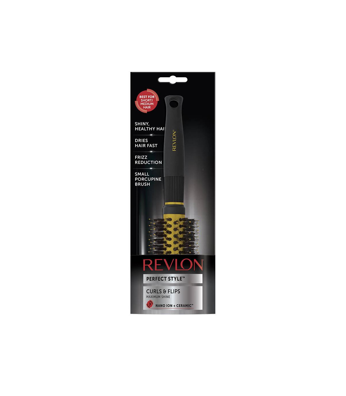 Revlon Ionic Ceramic Curls & Flips Small Round Barrel Blow Dry Hair Brush Nano Anti Bacterial Technology