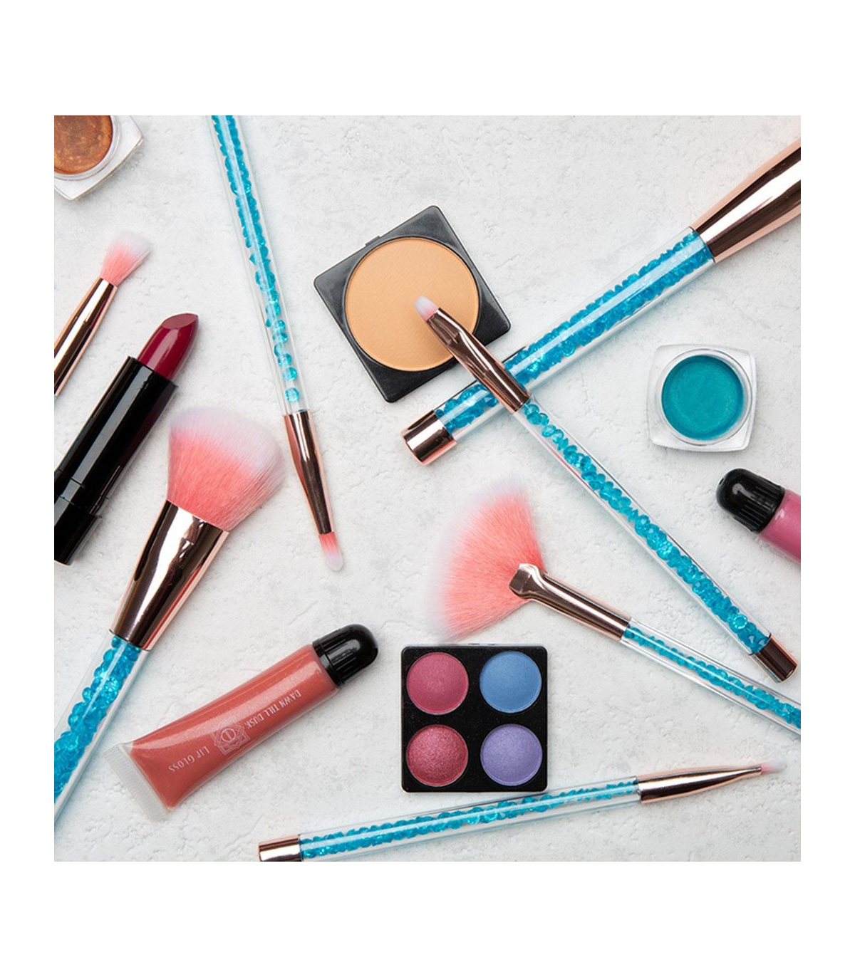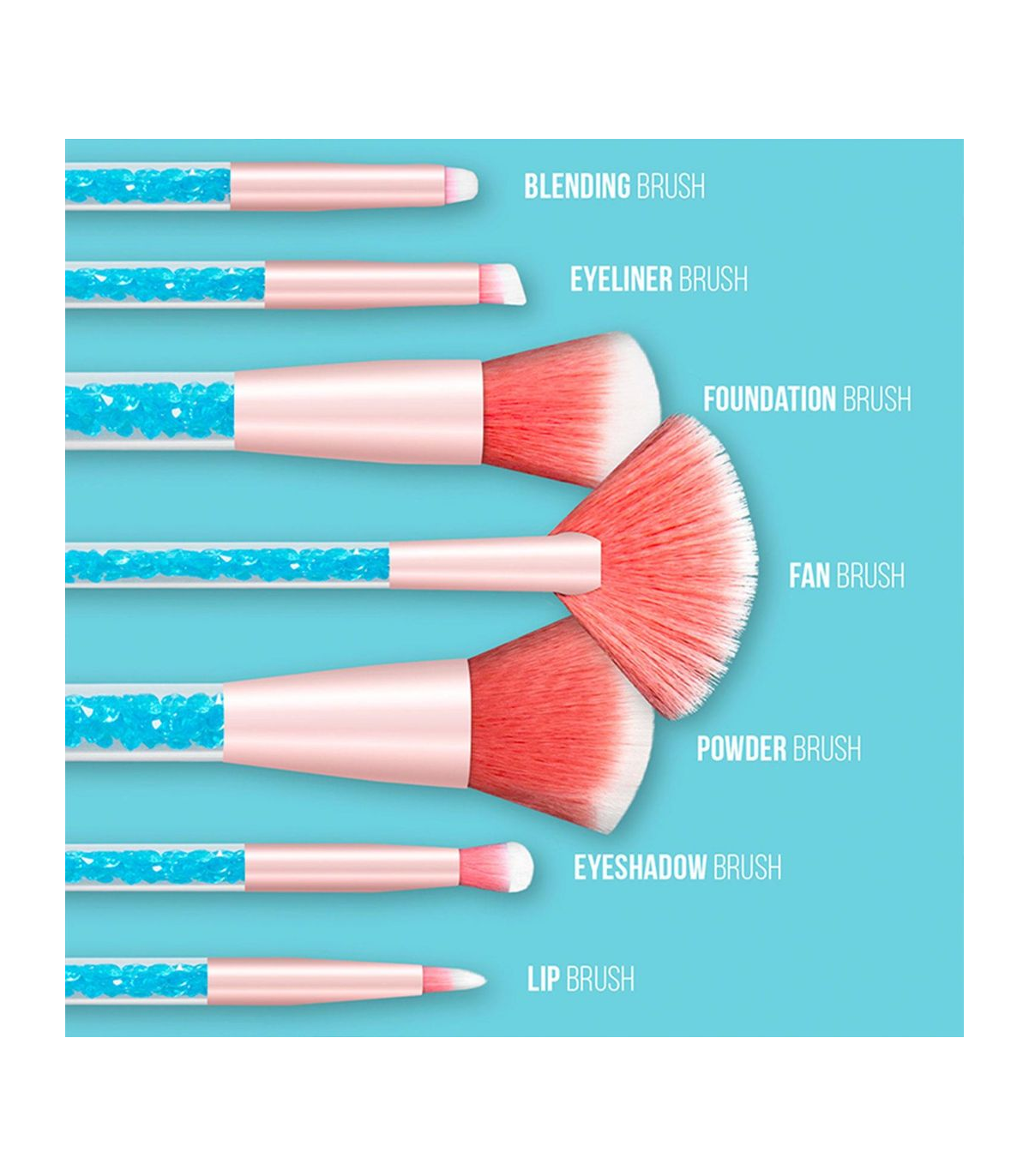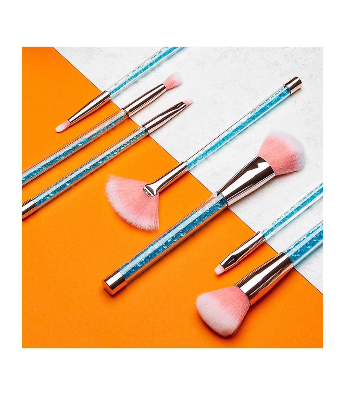Cosmic Make Up 7pcs Brush Set With Liquid Glitter Handle Turquoise