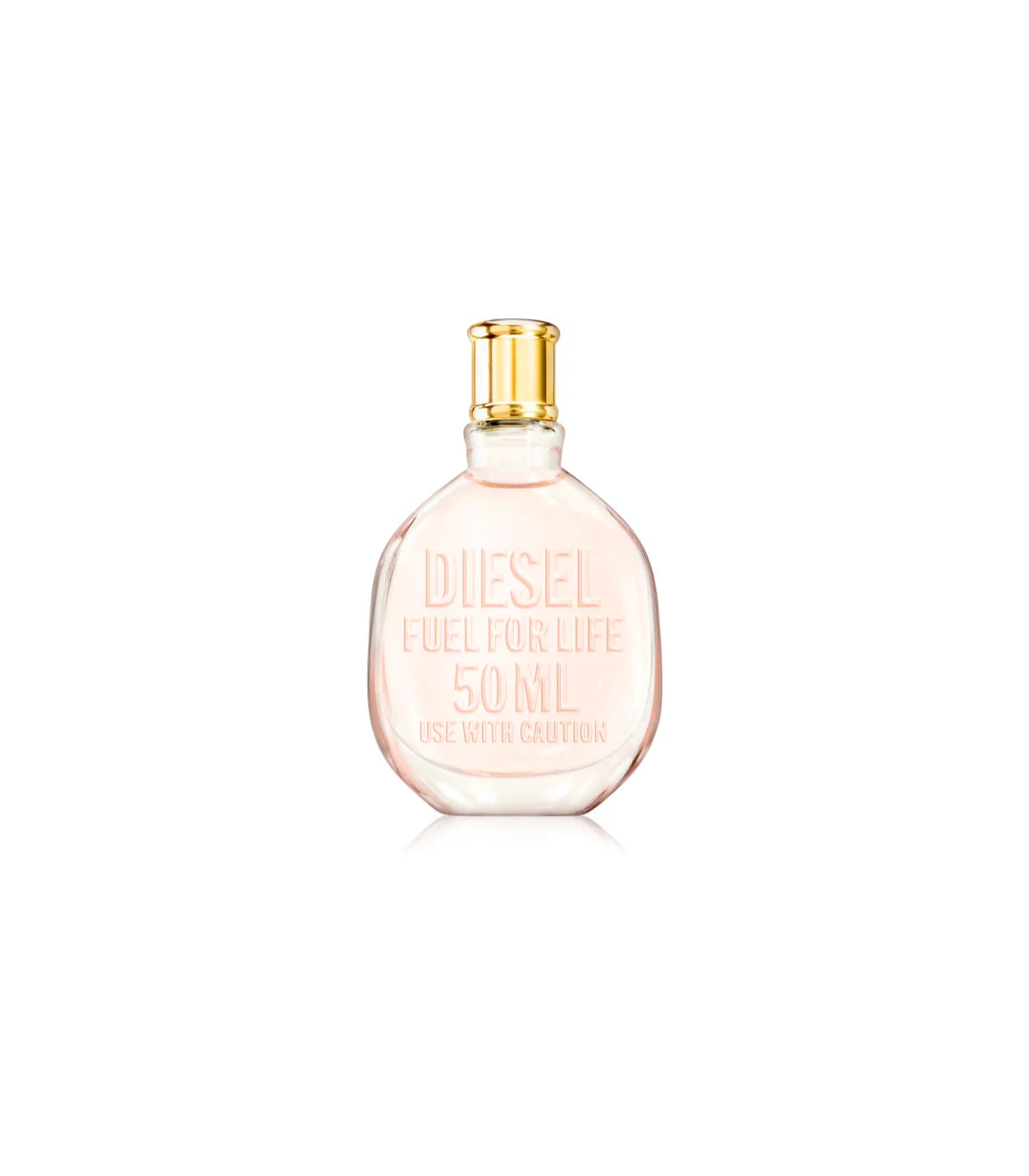 The 50ml bottle of Diesel Fuel for Life Woman is designed to reflect the fragrance's bold and edgy character. The bottle features a sleek, modern shape with a distinctive, embossed logo. The transparent glass reveals the dark, amber-colored liquid inside, while the black and silver cap adds a touch of sophistication. The design is both stylish and functional, making it a striking addition to any fragrance collection.