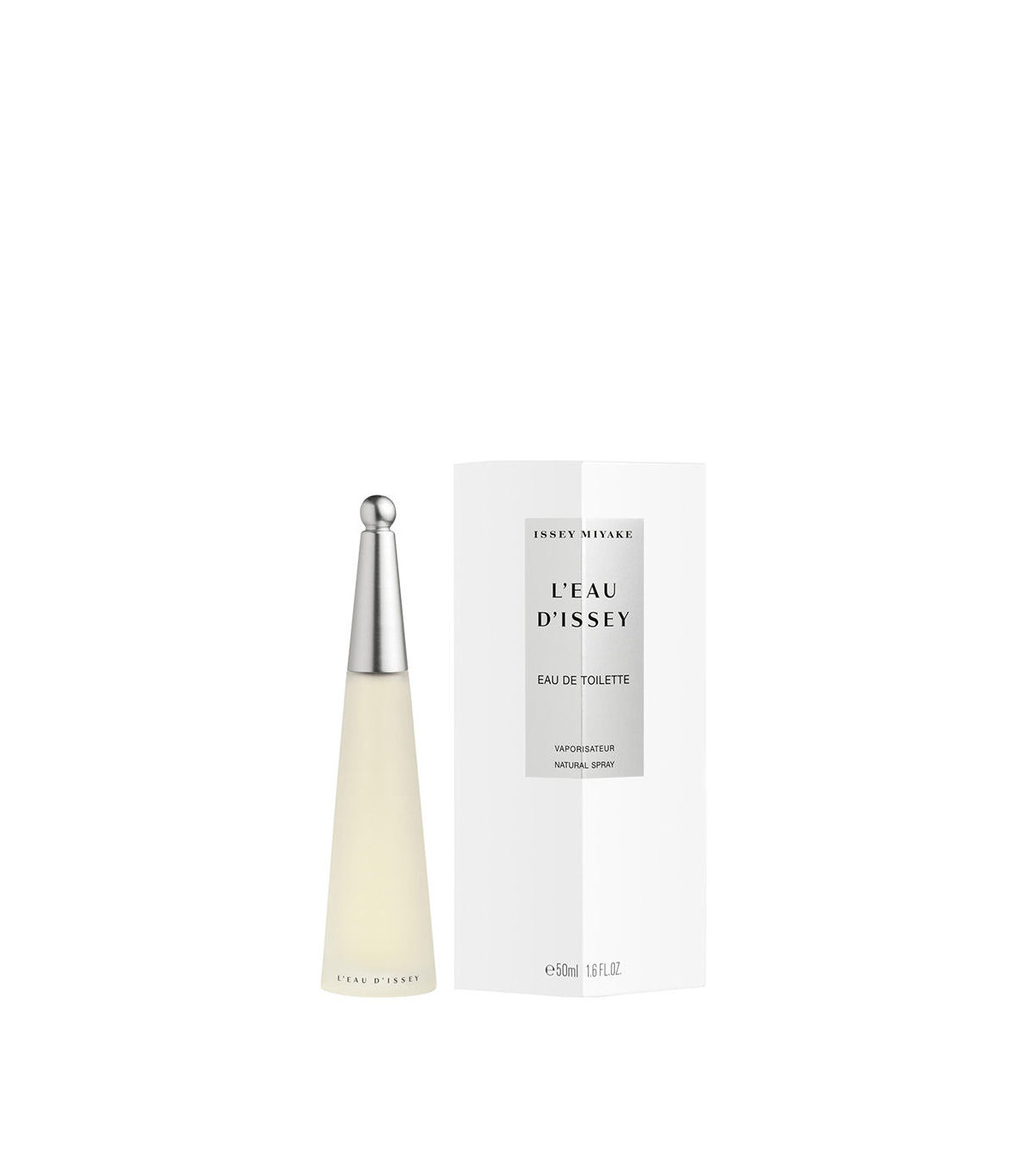 The bottles sleek, conical shape with a metallic cap reflects Issey Miyakes minimalist and modern aesthetic, making it a refined addition to any fragrance collection.