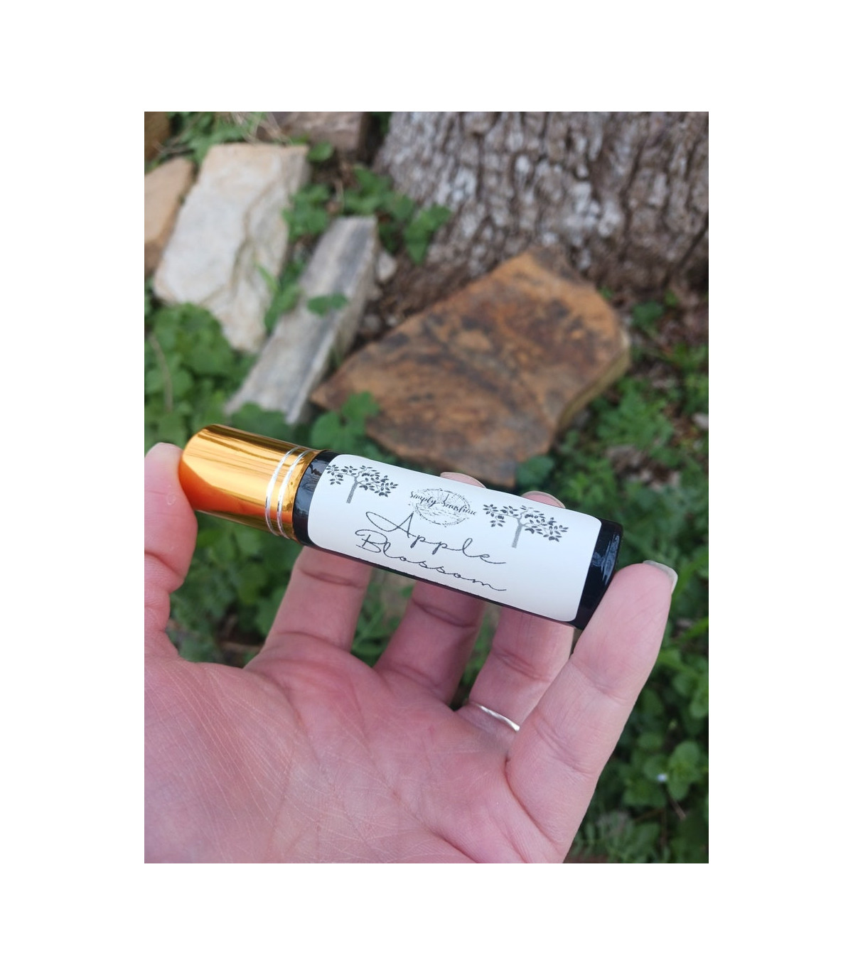 At the heart of Apple Blossom Roll On Perfume lies the delicate and romantic essence of apple blossom, the star of the fragrance. Apple blossom, with its soft and subtly sweet floral aroma, brings a gentle and feminine touch to the perfume. This floral note is balanced by a whisper of jasmine, which adds a layer of sophistication and depth. Jasmine, known for its rich and intoxicating scent, blends harmoniously with the apple blossom, creating a heart that is both tender and elegant. The floral bouquet is rounded out by a hint of lily of the valley, which imparts a fresh and dewy quality, reminiscent of a spring garden in full bloom.