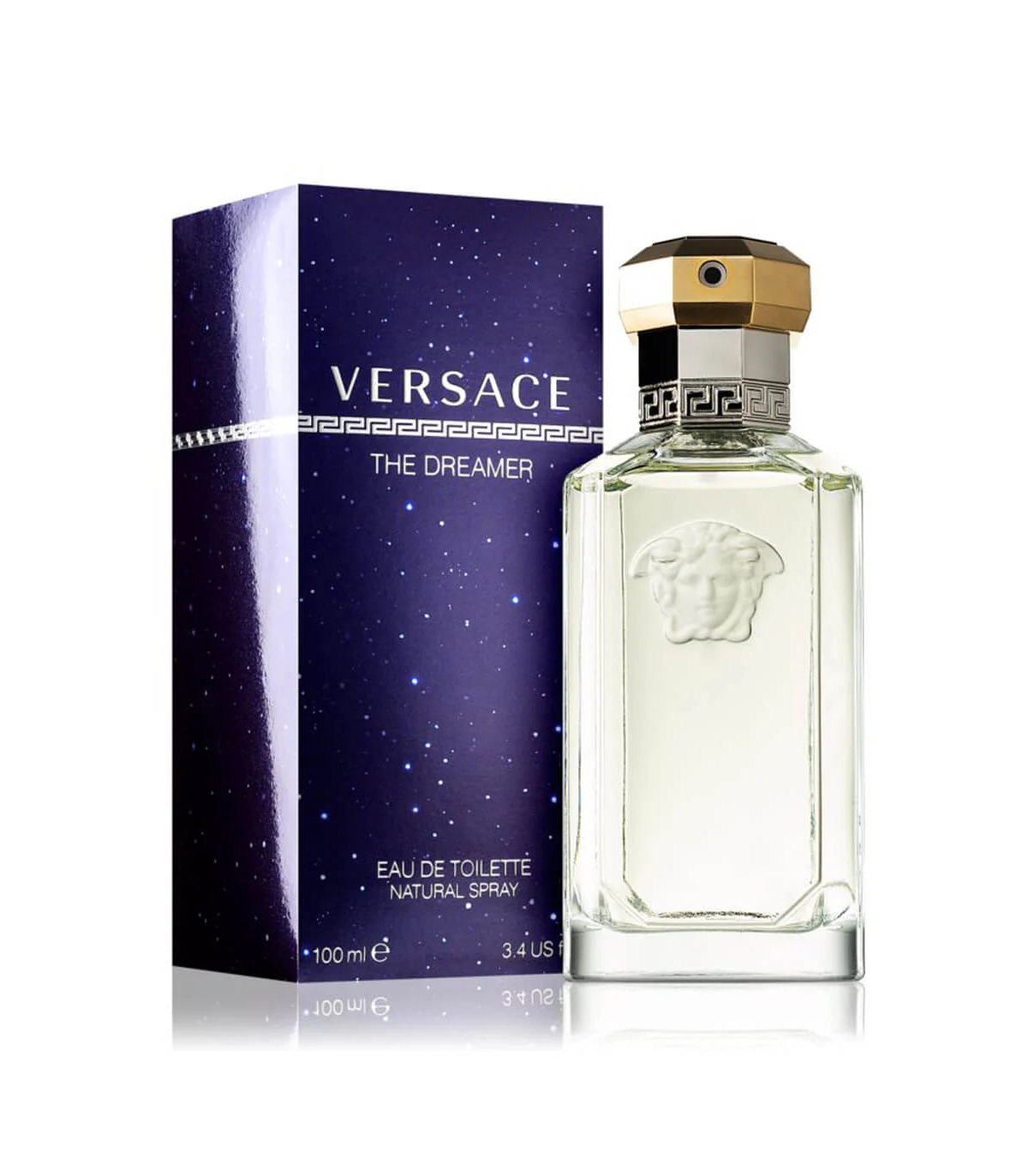 Versace The Dreamer features a distinctive bottle design that reflects the fragrance's dreamlike and sophisticated nature. The bottle is elegant and simple, with clean lines and a classic shape, embodying the timeless charm of the scent.