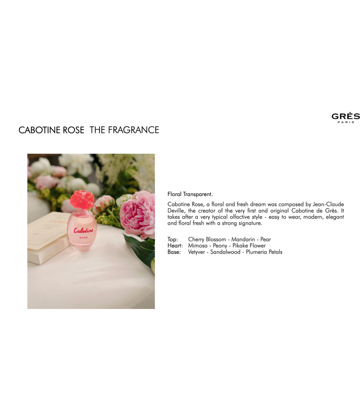 Gres Cabotine Rose is a delightful and enchanting fragrance that embodies the essence of romance and femininity. This 100ml Eau De Toilette Spray offers a captivating olfactory experience, perfect for those who adore a fresh, floral, and romantic scent profile.
