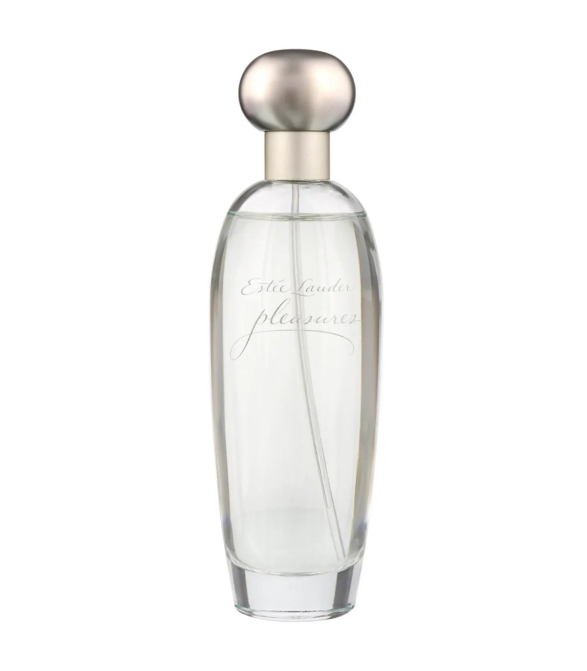 The 100ml bottle of Estée Lauder Pleasures is a classic representation of the fragrance's refined and elegant nature. The bottle features a sleek and simple design with a curved silhouette, adorned with a minimalist silver cap that adds a touch of sophistication. The clear glass allows the pale pink liquid to be visible, reflecting the fragrance's light and fresh character. The understated label and clean lines of the bottle make it a timeless addition to any perfume collection.