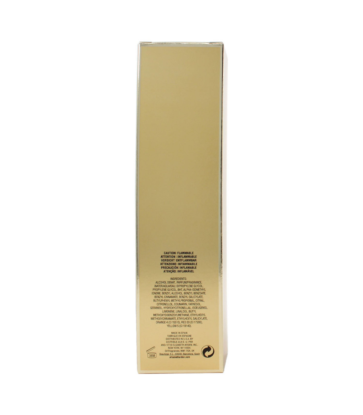 The Elizabeth Arden Fifth Avenue Eau de Parfum Spray is housed in a sleek and sophisticated bottle that reflects the fragrance's elegant character. The bottle features a tall and slender design with clean lines, reminiscent of the iconic skyscrapers that line Fifth Avenue. The clear glass body showcases the golden hue of the perfume, while the gold cap and Elizabeth Arden logo add a touch of luxury and refinement. The overall design is both classic and modern, capturing the essence of the fragrance's timeless appeal.