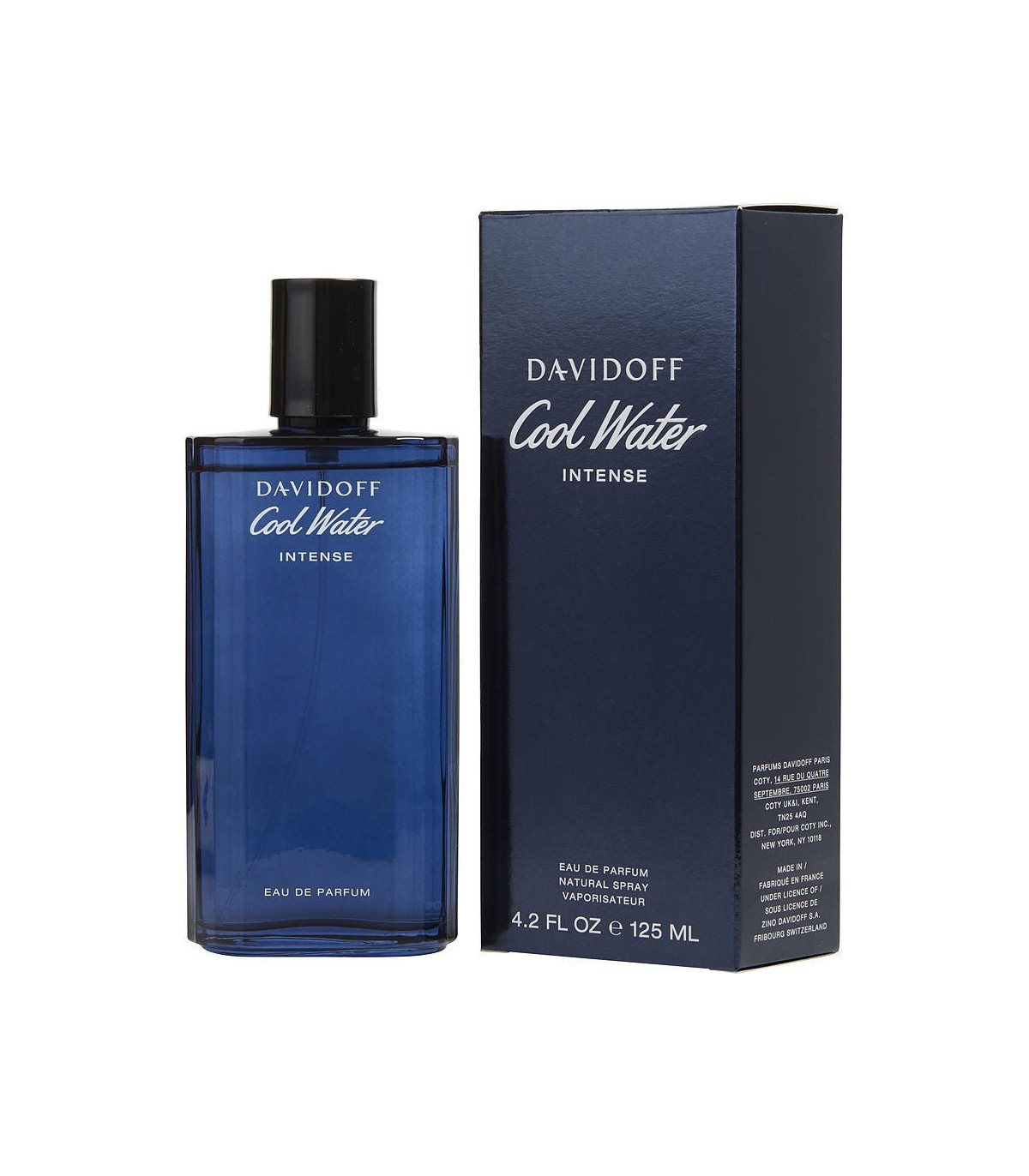 The 125ml bottle of Cool Water Intense retains the sleek and classic design of the original Cool Water, but with a darker and more intense color palette to reflect the richer nature of the fragrance inside. The deep blue glass bottle is both elegant and masculine, embodying the essence of the ocean and the intensity of the fragrance. The bottles clean lines and modern design make it a stylish addition to any collection, while the silver cap adds a touch of sophistication.