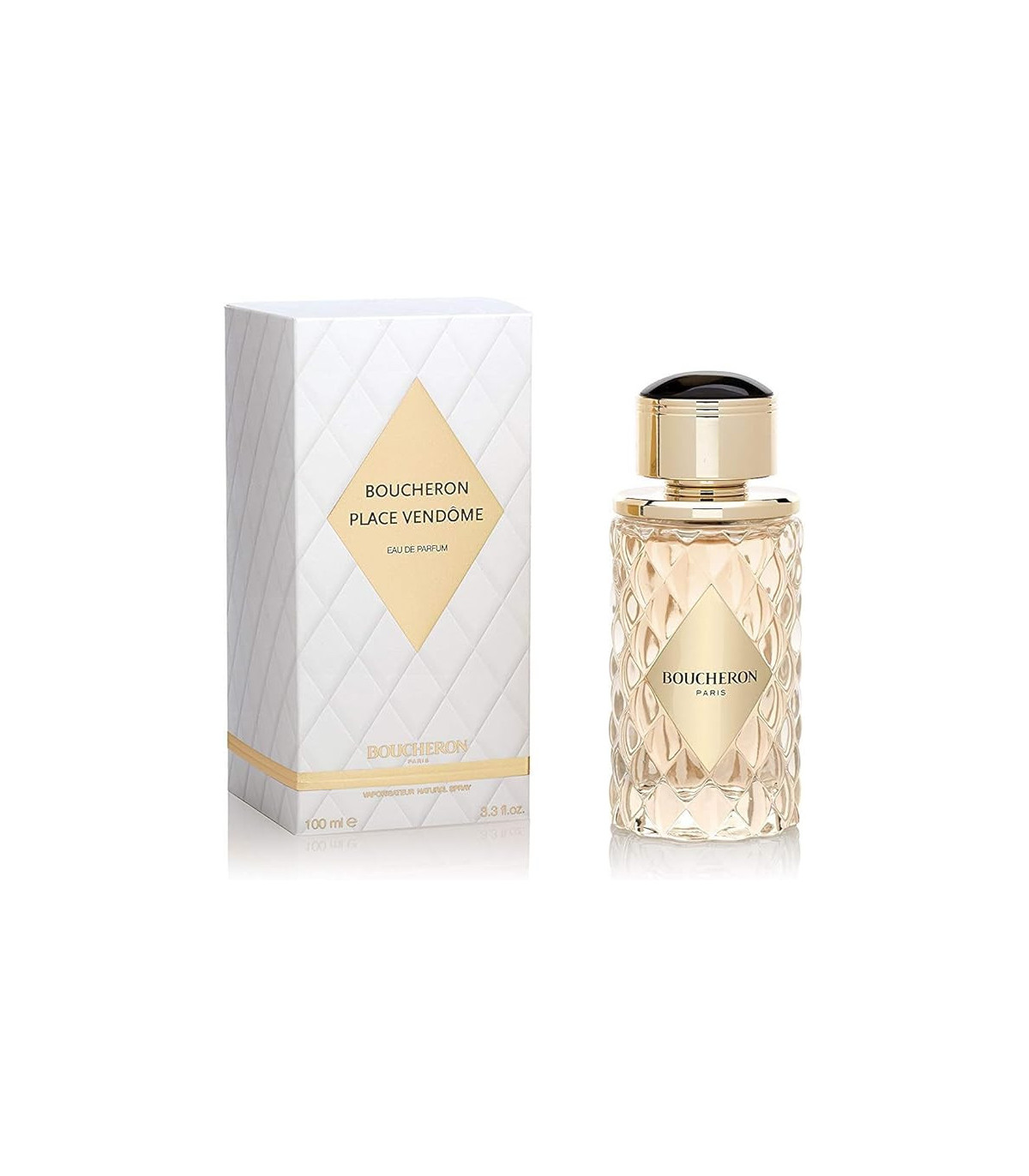 Boucheron Place Vendôme is presented in an exquisite and elegant bottle that reflects the fragrances luxurious character. The 100ml bottle features a sleek and sophisticated design, with a clear glass that showcases the delicate golden hue of the fragrance. The bottle is adorned with elegant detailing, including a gold-toned cap and a refined shape that evokes a sense of timeless elegance and grandeur. The design of the bottle complements the opulent nature of the fragrance, making it a beautiful addition to any collection.