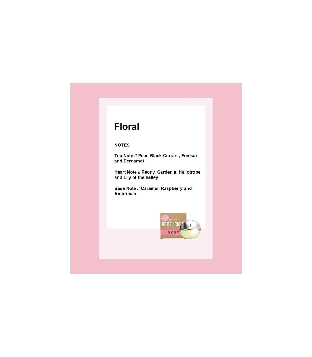 Indulge in the extra deliciousness of DKNY Be Extra Delicious by Donna Karan. The fragrance opens with a bright and juicy burst of pear, black currant, freesia, and bergamot, creating an inviting and fresh top layer. As it develops, the heart reveals a bouquet of peony, gardenia, heliotrope, and lily of the valley, adding a lush and floral dimension. The scent settles into a warm and sweet base of caramel, raspberry, and ambroxan, leaving a delectable and long-lasting impression.
