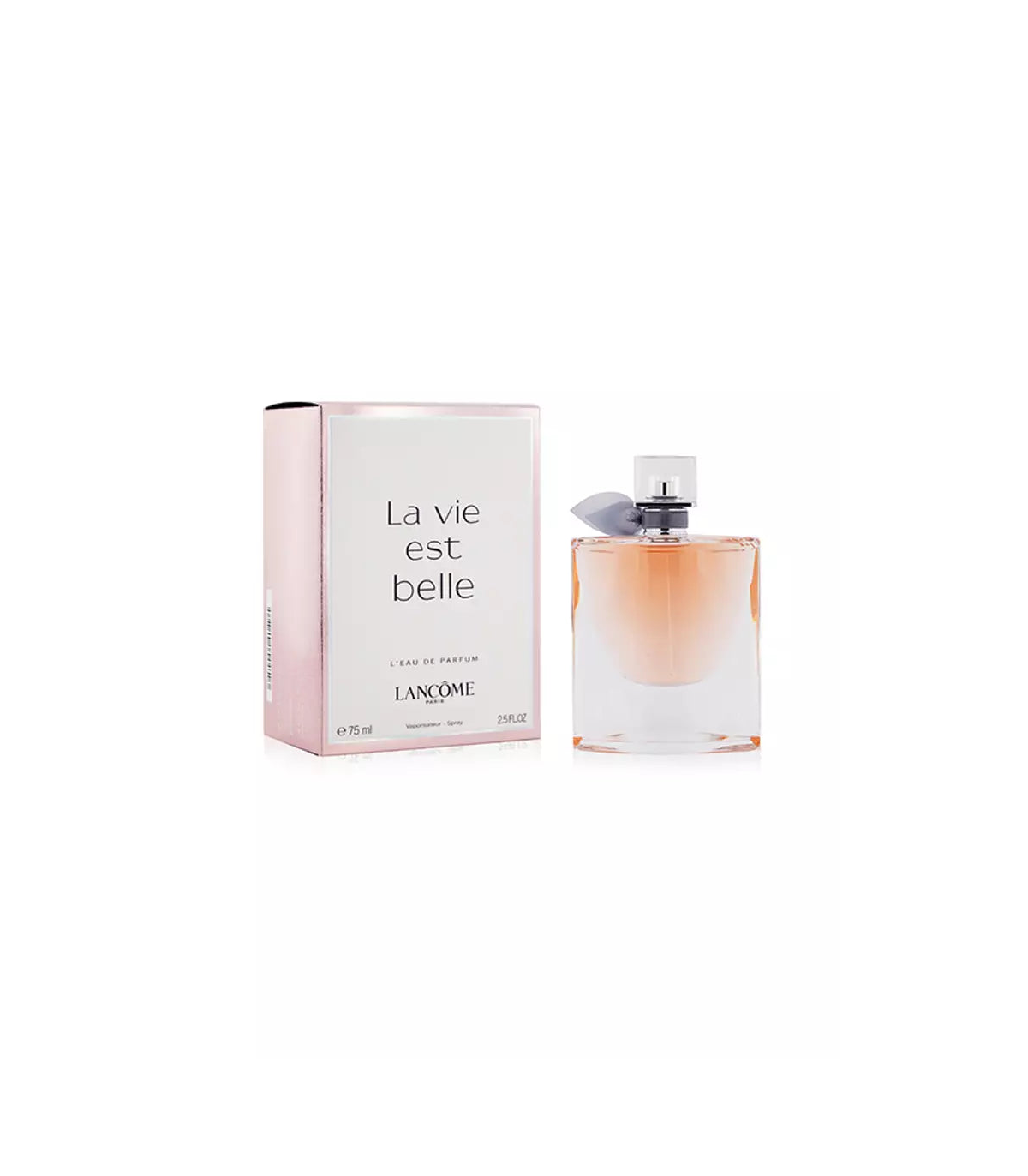 The 75ml bottle of Lancôme La Vie Est Belle is designed to reflect the elegance and charm of the fragrance. The bottle features a unique and graceful shape, reminiscent of a sparkling crystal. The fragrance is housed in a clear glass bottle adorned with a luxurious ribbon tied around the neck, symbolizing the joy and beauty of the scent. The 75ml size is ideal for both daily wear and special occasions, offering a generous amount of the exquisite fragrance.