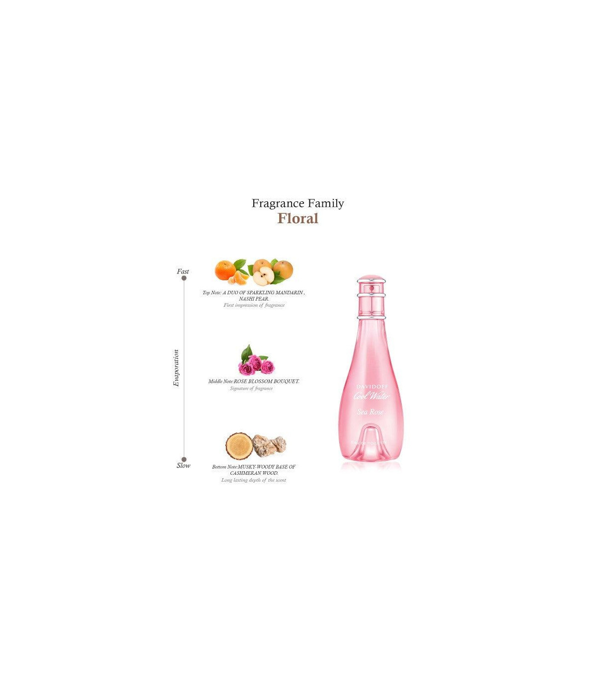 In summary, Davidoff Cool Water Sea Rose Eau De Toilette Spray 100ml is a refreshing and enchanting fragrance that beautifully combines floral elegance with aquatic freshness. Its blend of vibrant top notes, delicate floral heart, and warm base creates a captivating scent experience perfect for any occasion. With its stylish bottle design and moderate longevity, Cool Water Sea Rose is a delightful addition to any fragrance collection. Whether youre treating yourself or searching for the perfect gift, Davidoff Cool Water Sea Rose is a fragrance that celebrates femininity, vitality, and the adventurous spirit of the modern woman.