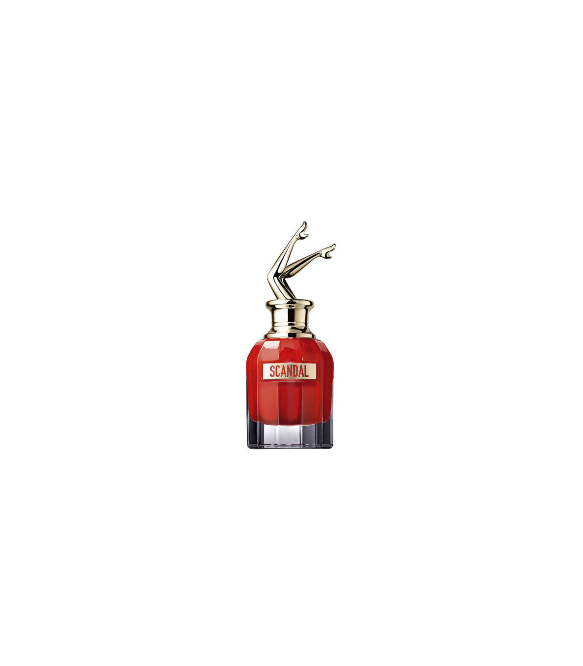 The 50ml bottle of Scandal Le Parfum captures the essence of Jean Paul Gaultiers playful, bold aesthetic. The bottle is crafted in a deep red color, symbolizing passion and intensity, and its sleek, rounded shape conveys elegance and strength. The iconic cap, featuring a pair of golden legs playfully posed in the air, is a nod to the fragrances flirty and confident spirit. This design is both fun and luxurious, making it a beautiful addition to any dressing table or collection.