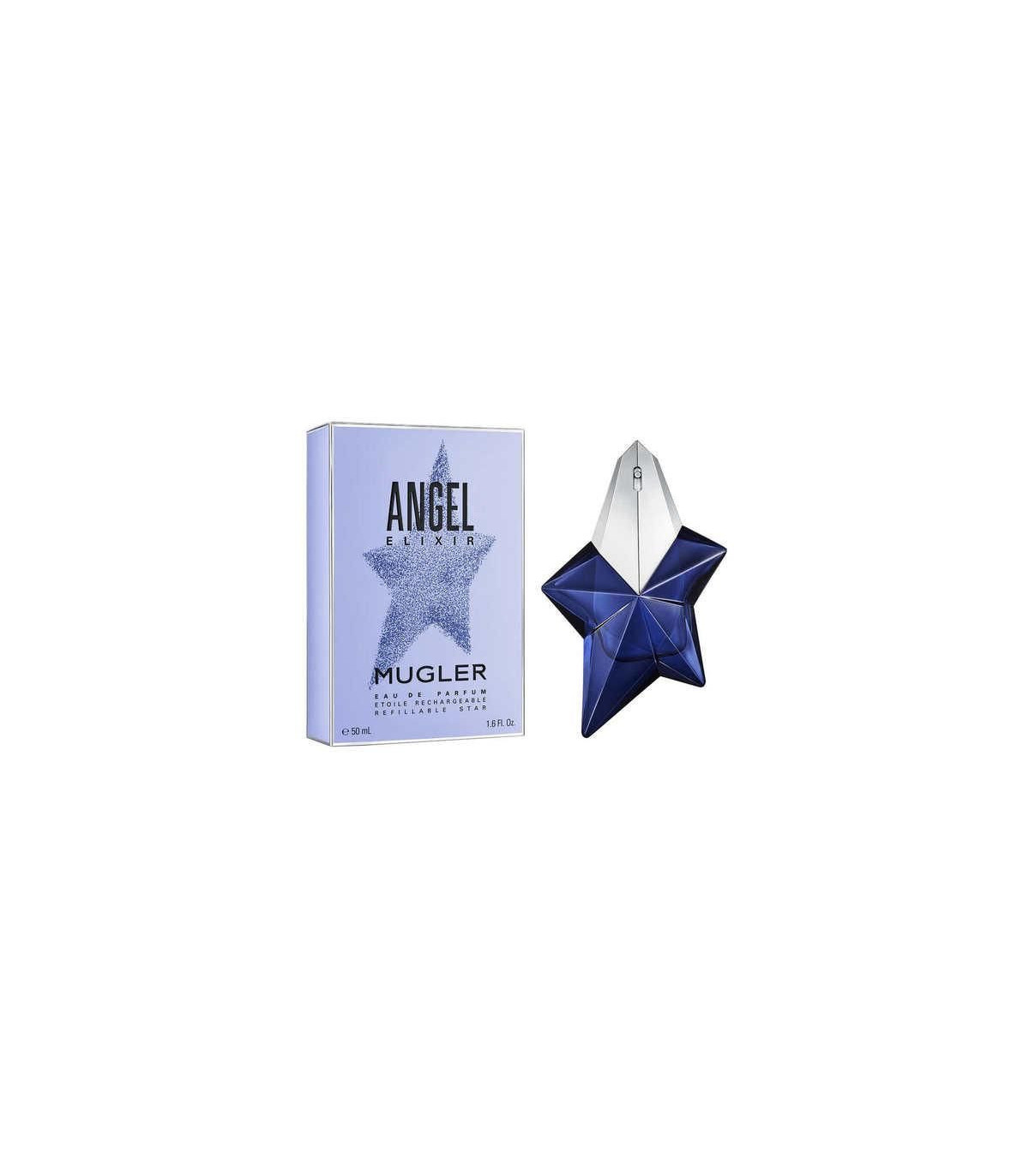 Angel Elixir is the unexpected evolution of Angel, reflecting the augmented femininity of today's fearless women. Combining innocence with power, and groundedness with extraordinary flair, its woody floral gourmand scent redefines the classic Angel essence. Envision a floral Milky Way in a deep blue star-shaped bottle. Angel Elixir transforms reality with its sweet gourmand and radiant white floral bouquet, enhanced by vibrant amber woods and luscious vanilla for a seductive, fearless effect.