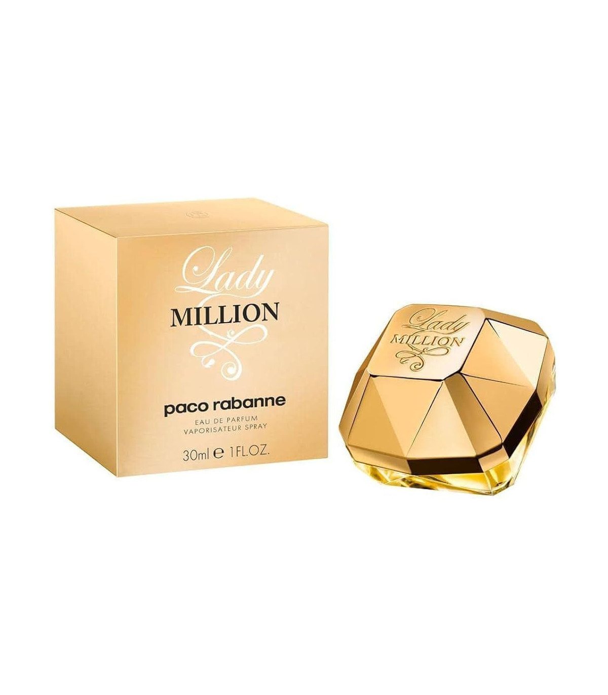 Ultra-feminine and glamorous, Lady Million by Paco Rabanne embodies the ideal womanconfident and irresistible. The fragrance is presented in a striking golden diamond-shaped bottle, symbolizing its vibrant and sensual character. It opens with fresh, zesty notes of bitter orange, fleshy raspberry, and neroli. The heart reveals a rich floral bouquet of orange blossom and Arabian jasmine, leading to a warm, seductive base of patchouli, honey, and amber. This fragrance is designed for the woman who desires nothing less than the best.
