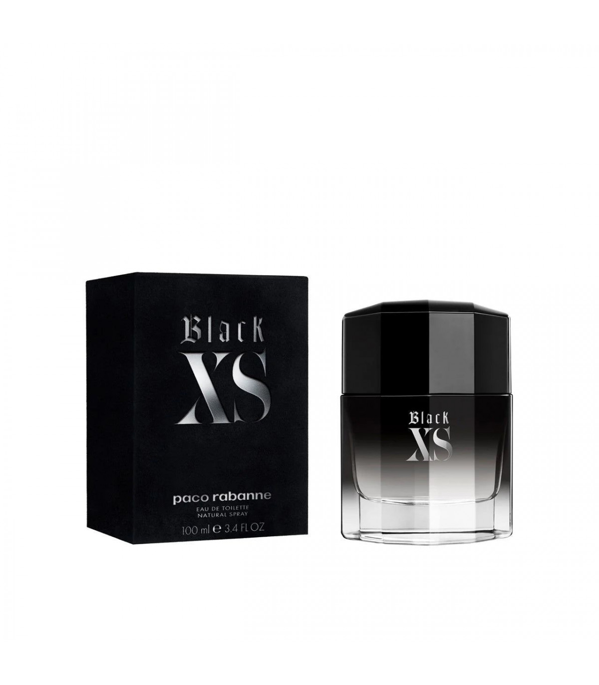 The bottle of Paco Rabanne Black XS mirrors the bold and rebellious nature of the fragrance. Its sleek, dark design features gothic-inspired detailing, with the brands logo etched on the bottle, adding to the edgy rock 'n' roll vibe. The deep black glass with silver accents makes it a striking addition to any fragrance collection.
