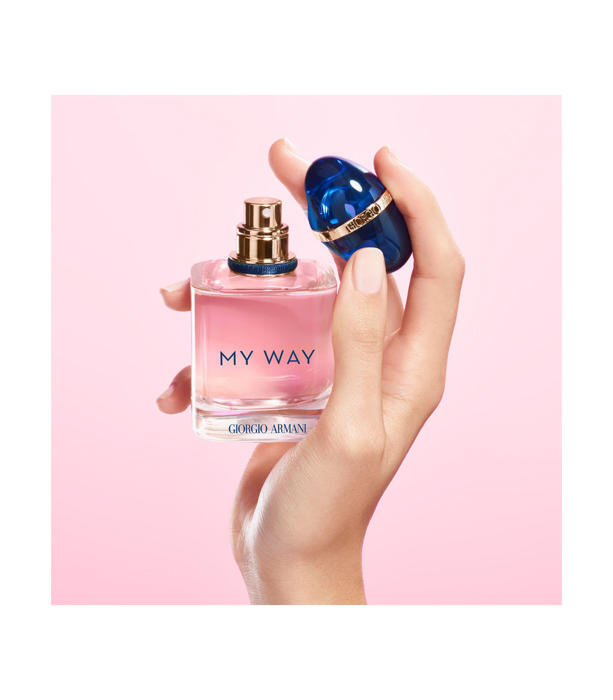 The packaging of Armani My Way Eau De Parfum reflects Giorgio Armani's commitment to sustainability and luxury. The sleek, modern design of the bottle, combined with its refillable capability, makes it both a stylish and environmentally conscious choice.