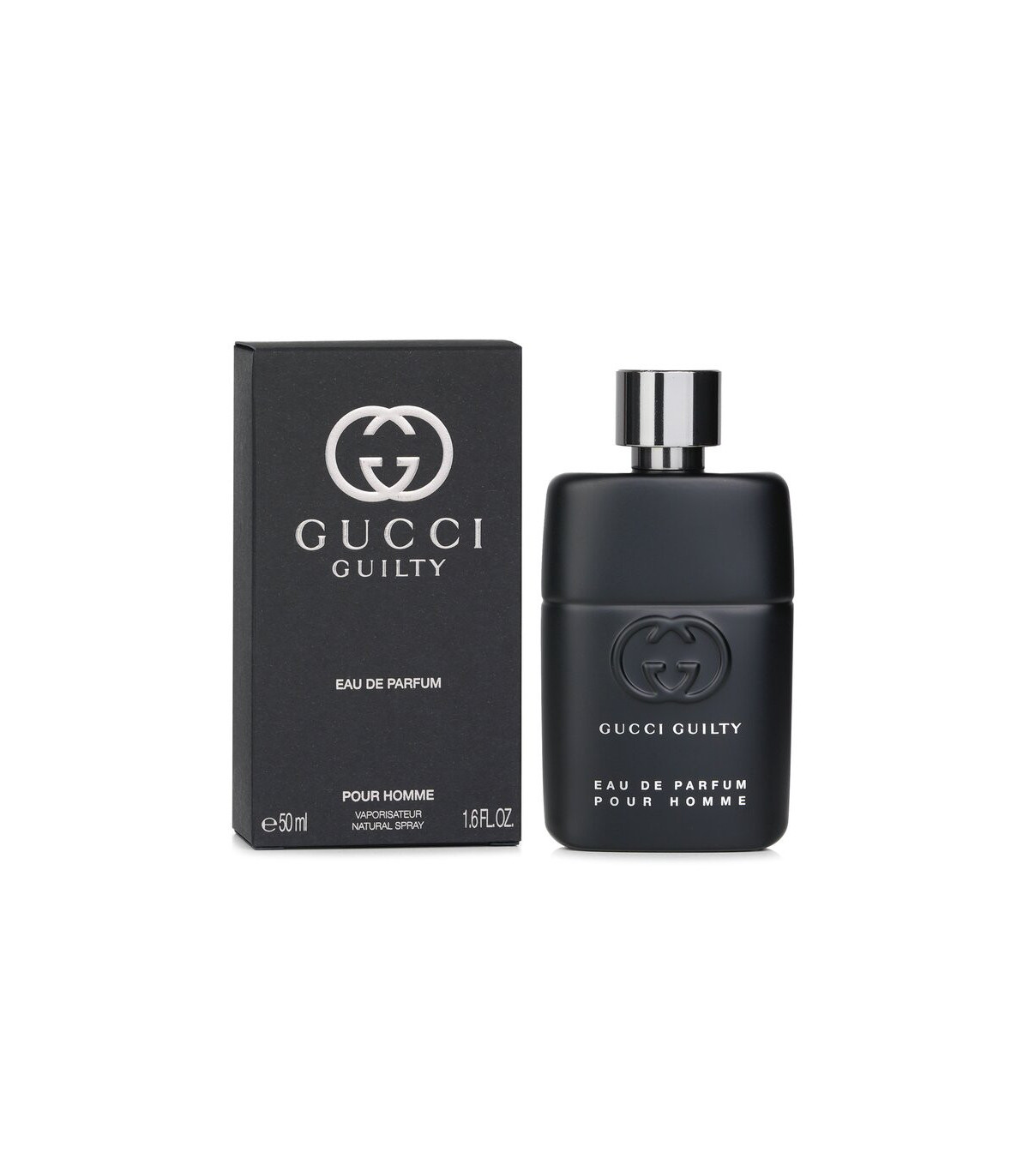 The 50ml bottle of Gucci Guilty Pour Homme features a sleek and modern design that reflects the fragrances luxurious and masculine character. The bottle is crafted from dark glass with a glossy finish, showcasing the deep color of the fragrance within. The minimalist design, with clean lines and a gold Gucci logo, adds a touch of elegance and sophistication. The overall design is both contemporary and timeless, making it a stylish addition to any fragrance collection.