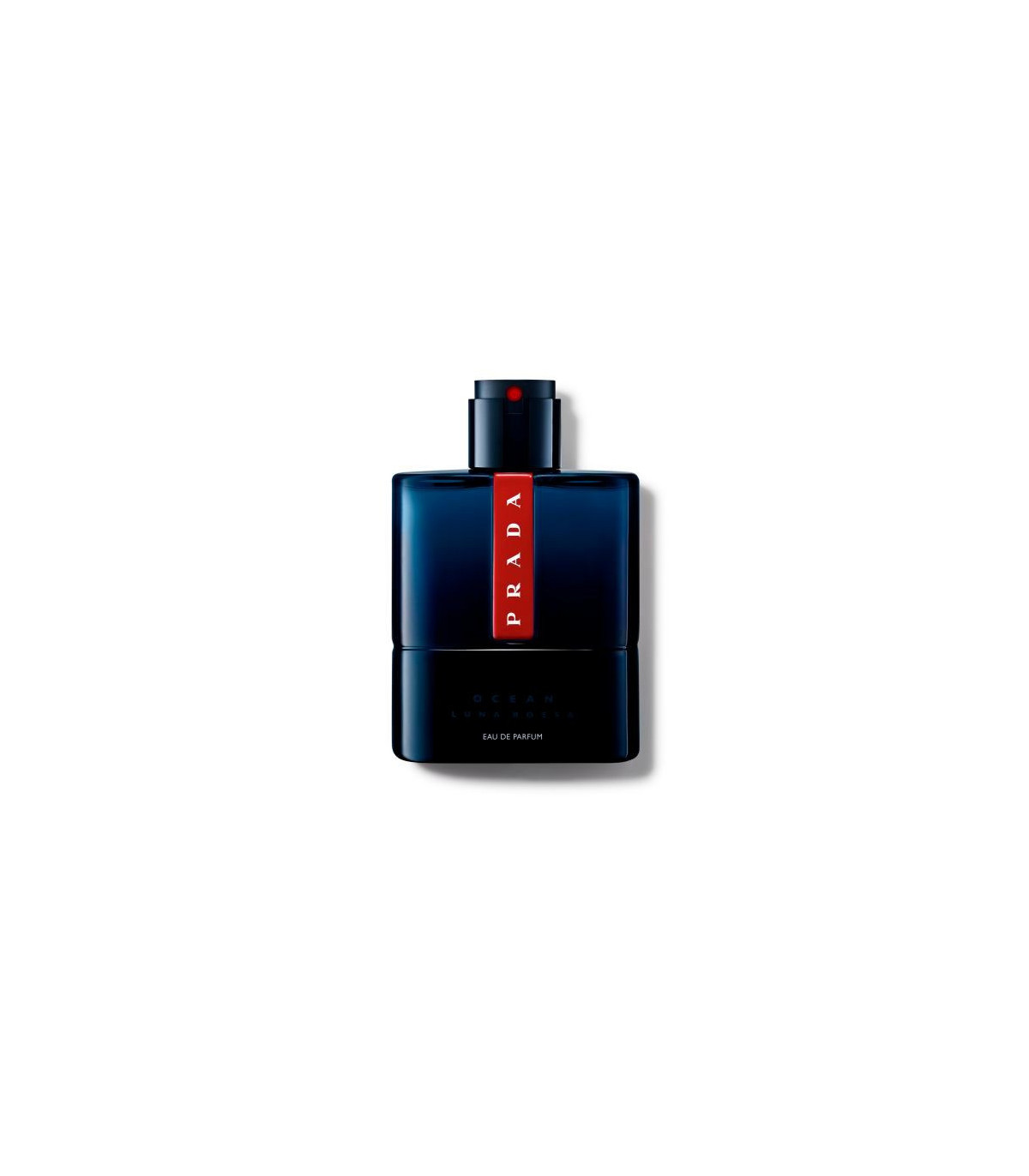 Inspired by the technological excellence and sleek, dynamic beauty of extreme sailing boats, the bottle is lacquered in a sophisticated deep blue, alluding to the magnetic intensity of ocean depths. The iconic PRADA red line symbolizes innovation, and the elegant night-black cap is finished with a red dot, referencing the luna rossa, the red moon.