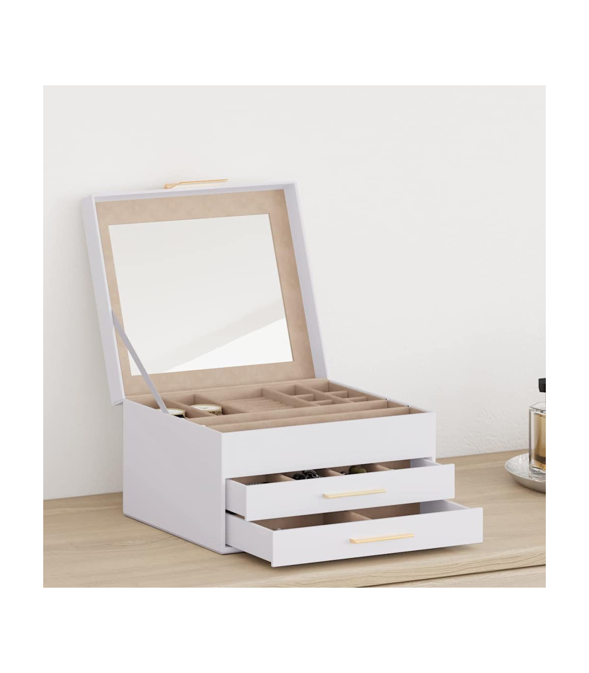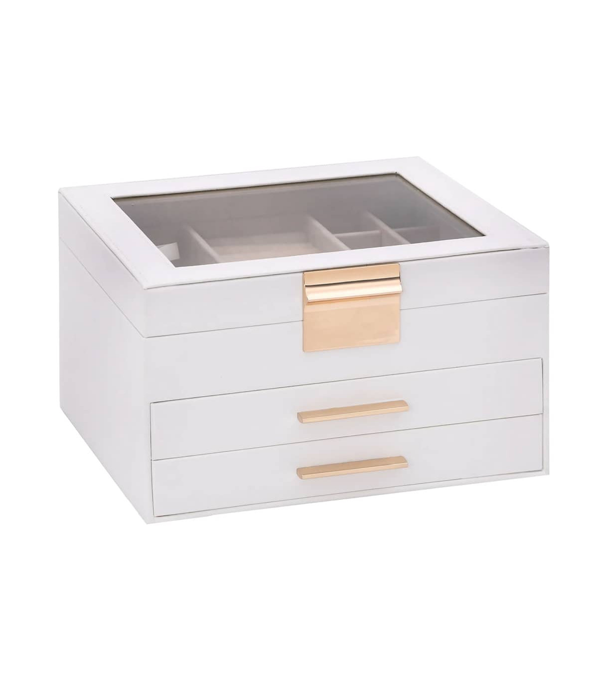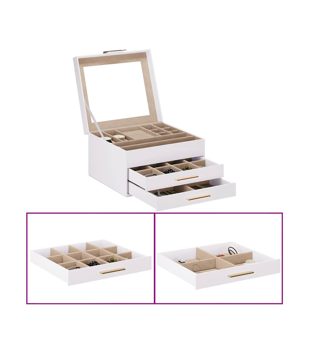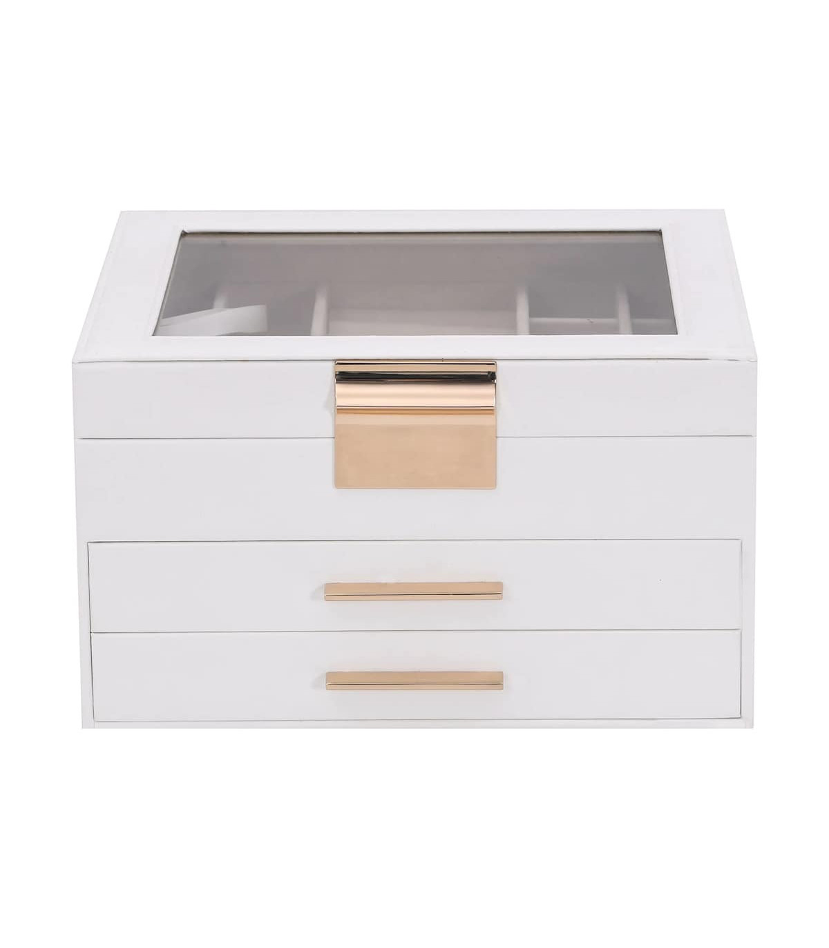 Organise your jewellery collection with ease using the 3-layer jewellery box, designed to combine elegance and practicality. Ample storage: The jewellery box features three layers with multiple compartments for effortless organisation. The top layer includes dedicated ring holders and compartments for bracelets and earrings. The second to the third layer offers spacious drawers for jewellery storage, keeping all jewellery organised and accessible.Soft velvet lining: The interior of the jewellery box is lined with velvet, offering a soft touch that exudes elegance. This gentle lining not only protects your precious jewellery from scratches but also elevates the overall aesthetic, creating a refined space for your treasured pieces.Elegant design: The leatherette finish of the jewelry box enhance the beauty of any dressing table, providing an attractive storage solution for treasured pieces.Versatile use: Ideal for personal use or as a thoughtful gift, this jewellery box suits various styles and occasions, appealing to both casual and discerning jewellery lovers.Long-lasting and easy maintenance: Made from durable material, the jewellery box requires minimal effort to clean by simply wiping it down with damp cloth.