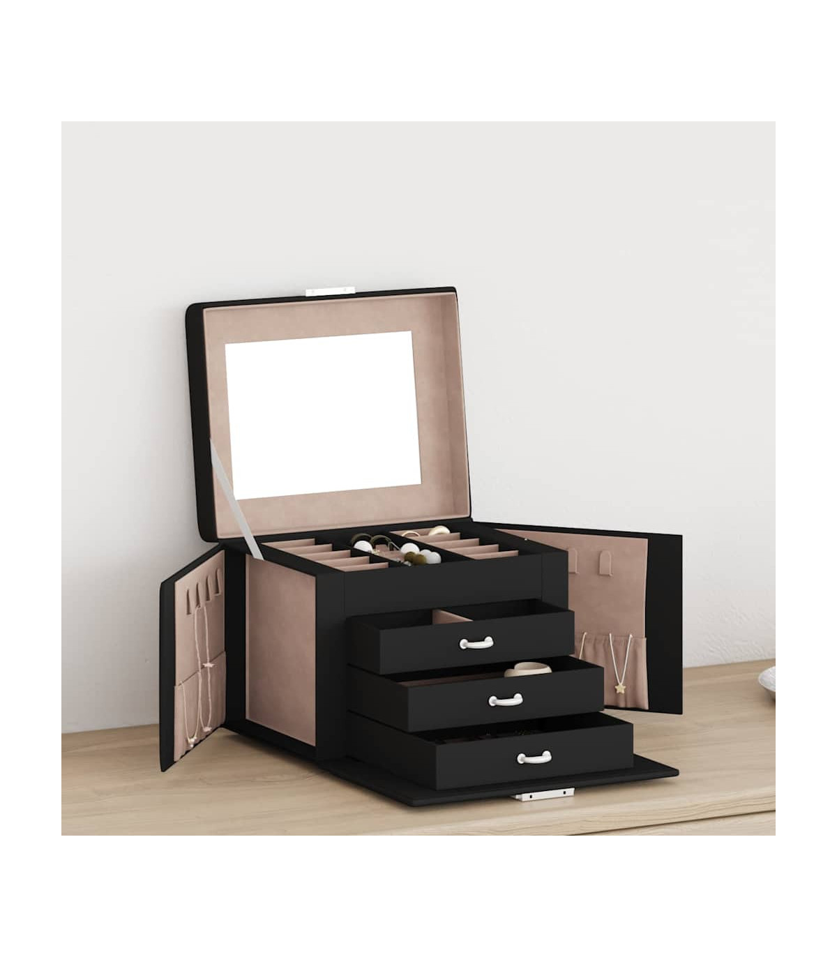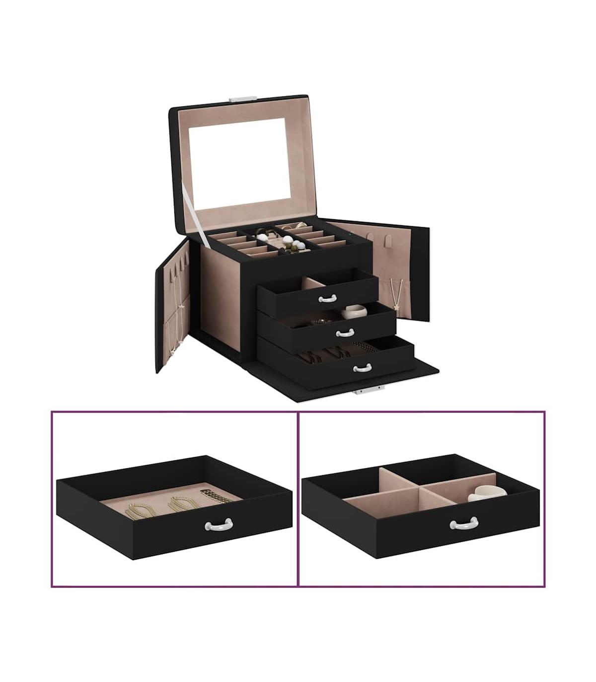 vidaXL Jewellery Box 4-Layer with Mirror Lockable Black 22.5x17.5x16.5 cm