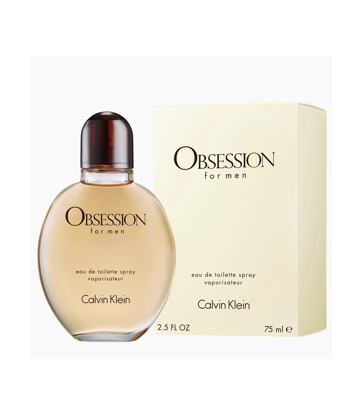 The design of the Calvin Klein Obsession bottle is simple yet elegant, reflecting the timeless nature of the fragrance. The rounded, amber-colored glass bottle mirrors the warm, rich tones of the fragrance inside, while the minimalist design adds to its classic appeal. The sleek, black cap contrasts with the warm hues of the bottle, adding a modern touch to its otherwise traditional design. The 75ml size makes it perfect for both at-home use and travel, providing a convenient way to take this iconic scent with you wherever you go.