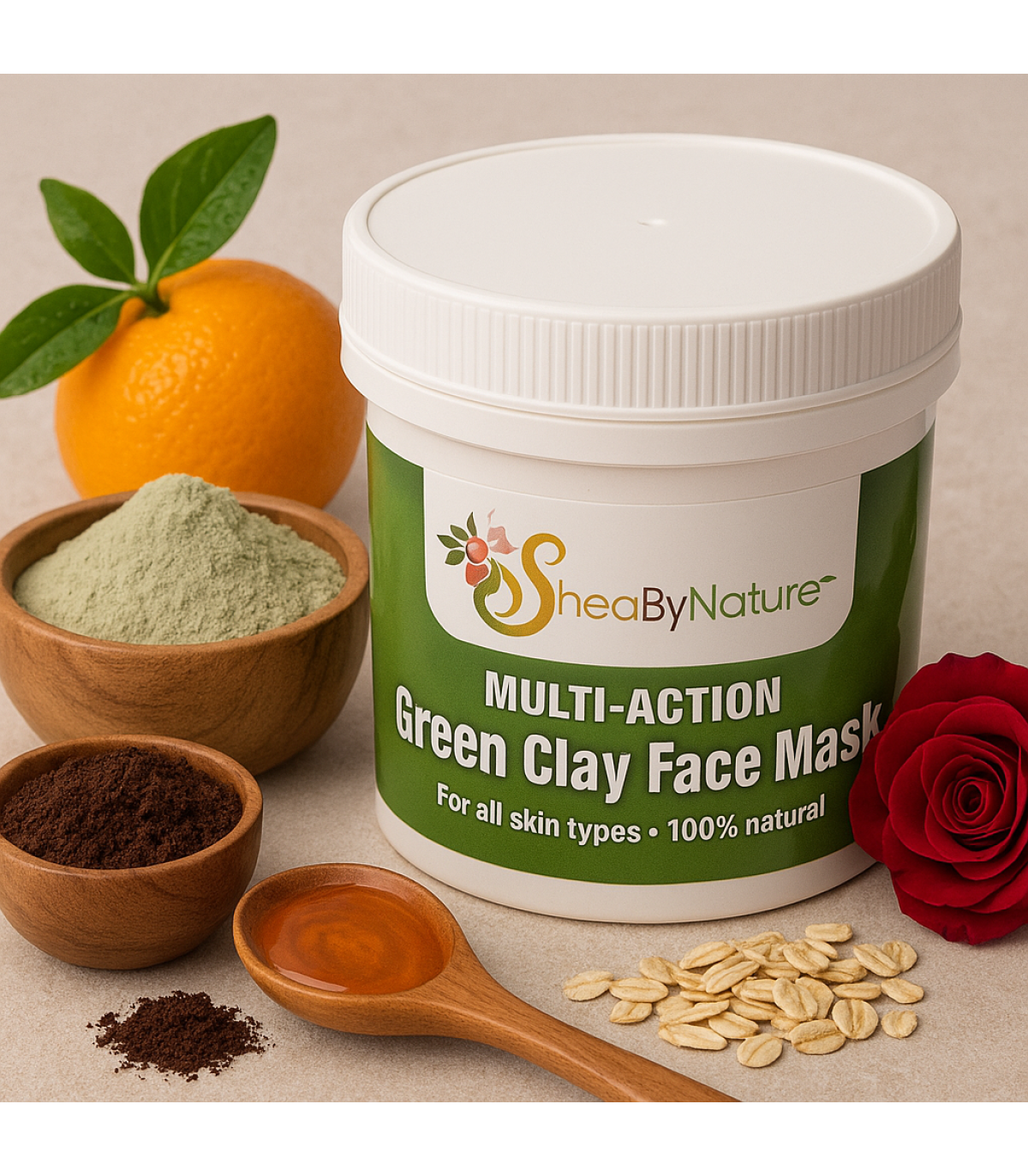 SheaByNature Multi-Action Green Clay Face Mask – 100% Natural, Vegan Skincare for Face, Body, Neck & Hands