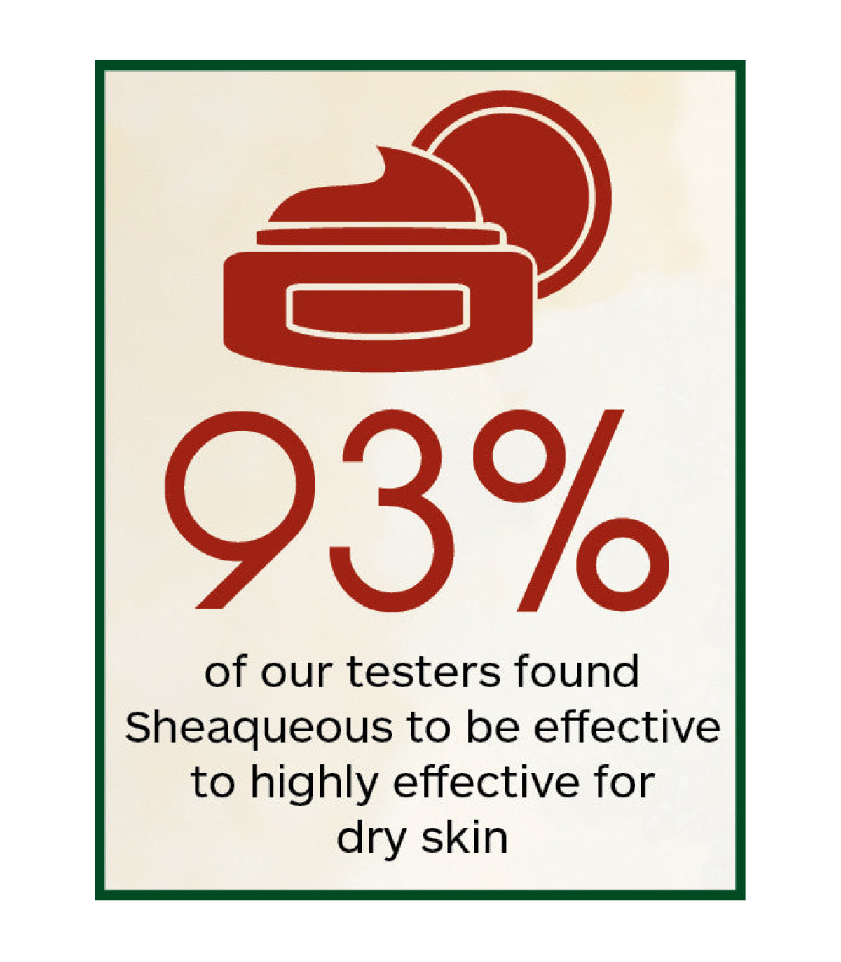 - 93% of testers found it highly effective for dry skin (from official Sheaqueous survey, June 2017).