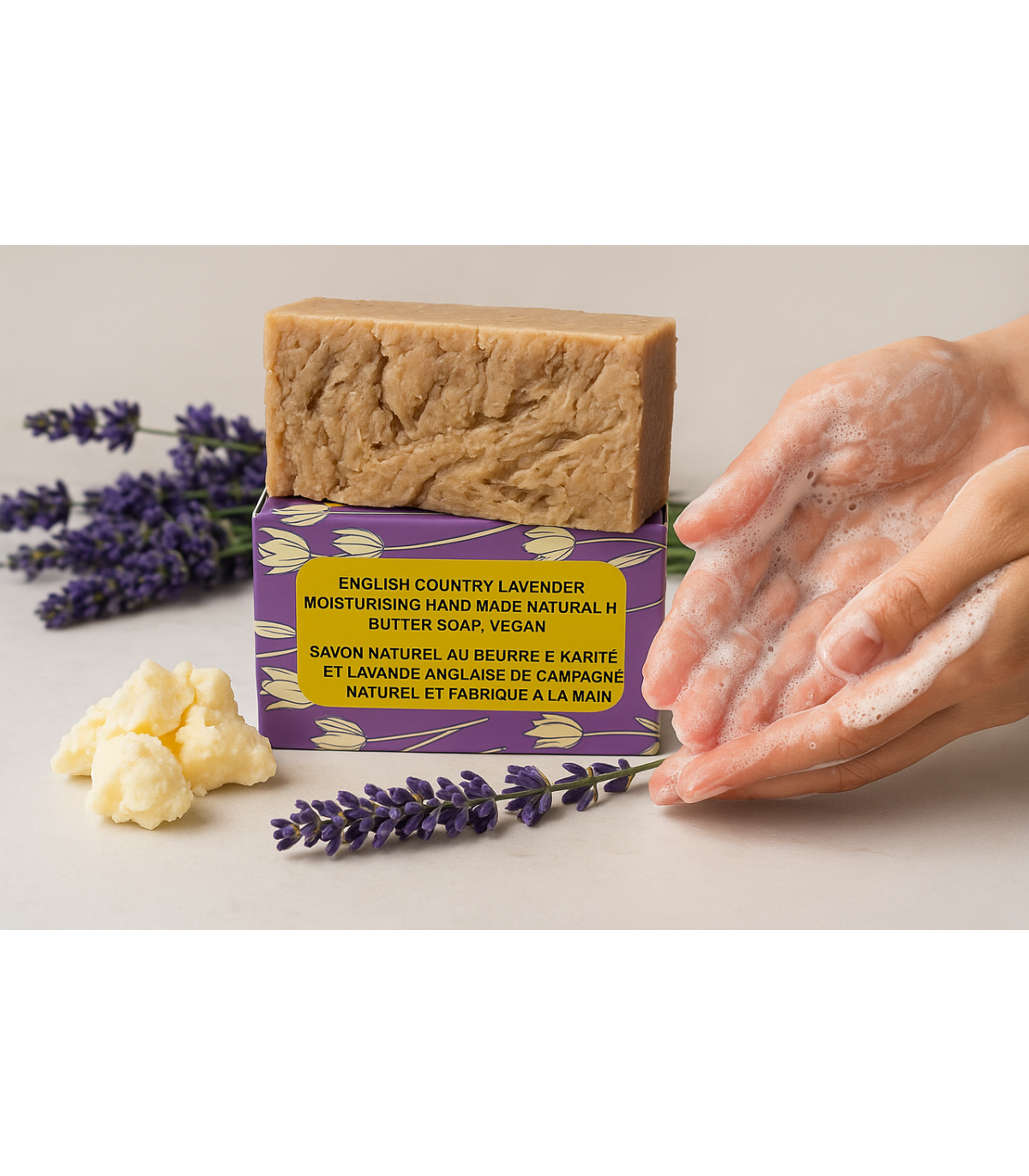 English Country Lavender Natural Handmade Soap with Organic Unrefined, Fair Trade Shea Butter, Coconut and Olive Oil (115-135g)