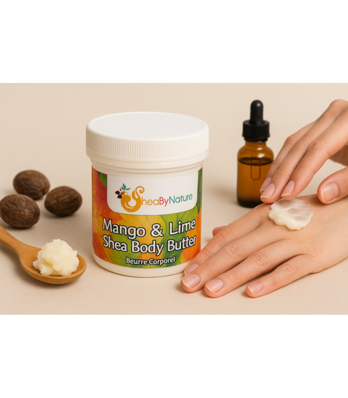 Mango and Lime Shea Butter Body Butter with Organic Unrefined, Fairly Traded Shea Butter and Mango Seed Butter. Intense Hydration for Dry Skin (250g)
