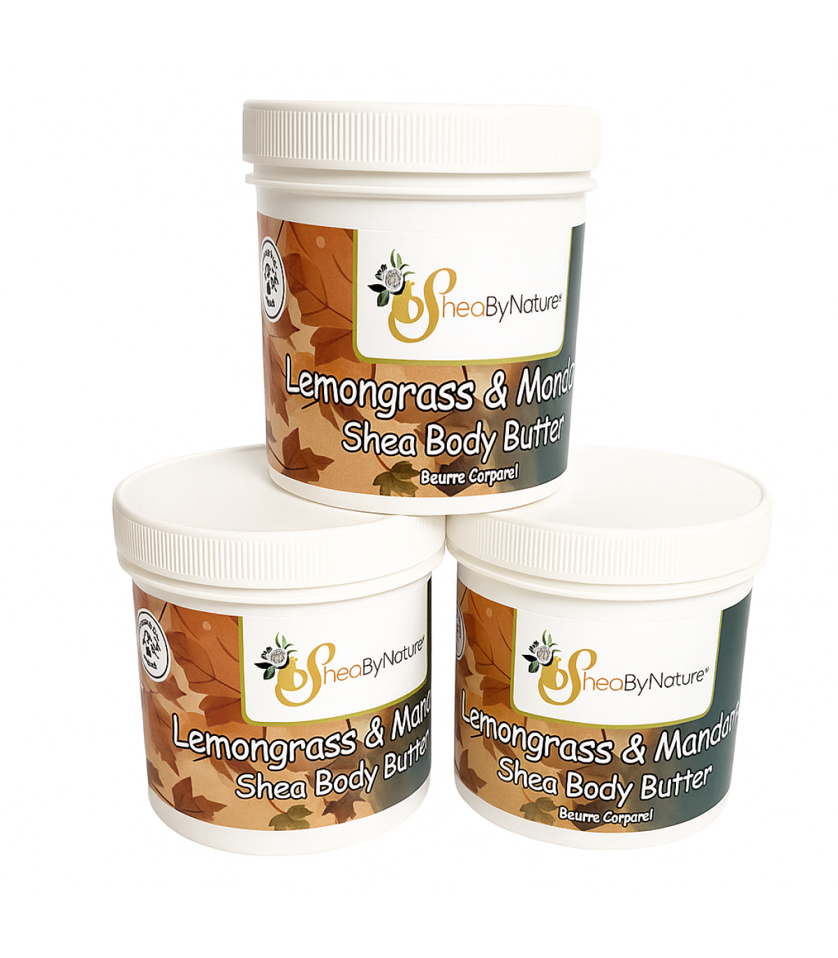 3 x 250ml Sheabynature Lemon grass & Mandarin Shea Butter Body Butter, Refreshing Intensive Body Moisturiser for very Dry Skin. 100% Natural Hand made. 250g e