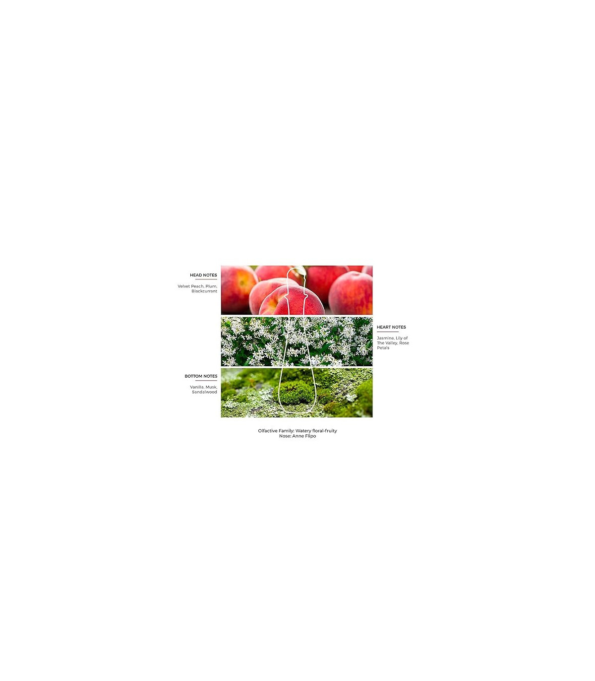 The fragrance opens with a vibrant and refreshing burst of citrus and fruity notes. It features the zesty aroma of bergamot, providing a bright and invigorating start. This is complemented by the sweet and juicy scent of peach, adding a delightful fruity dimension. The subtle floral note of lily of the valley enhances the freshness of the top notes, creating an uplifting and engaging introduction.