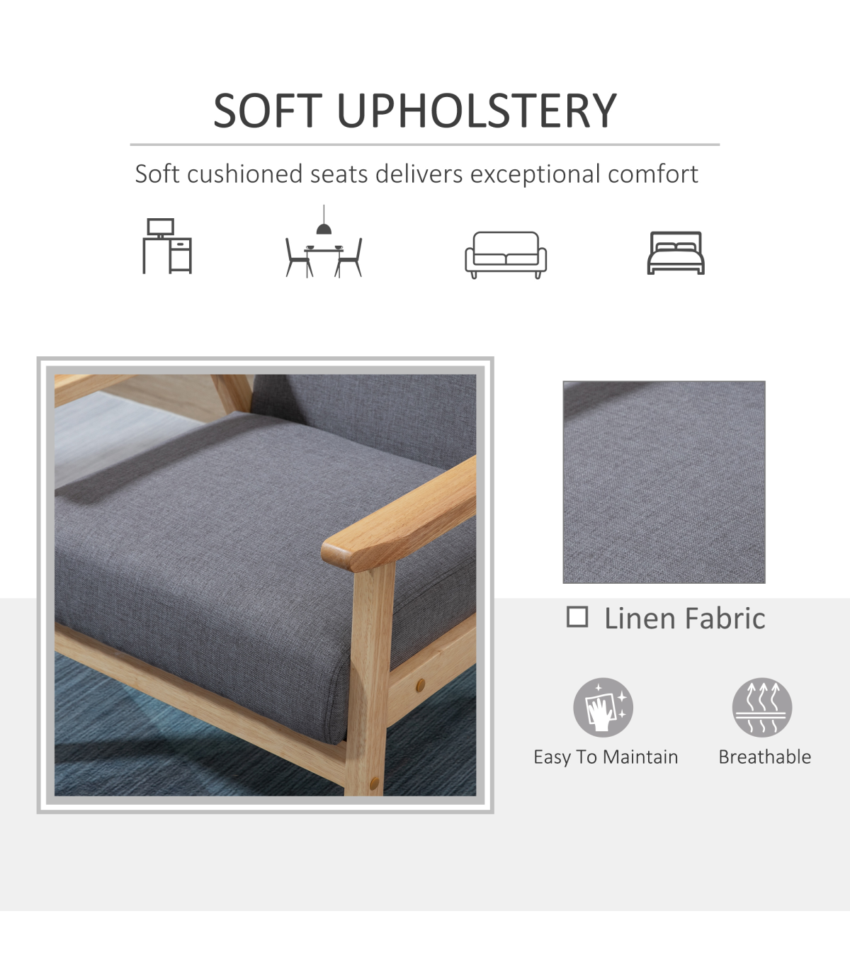 Features a thick back and seat cushion for you to sink into comfortably
