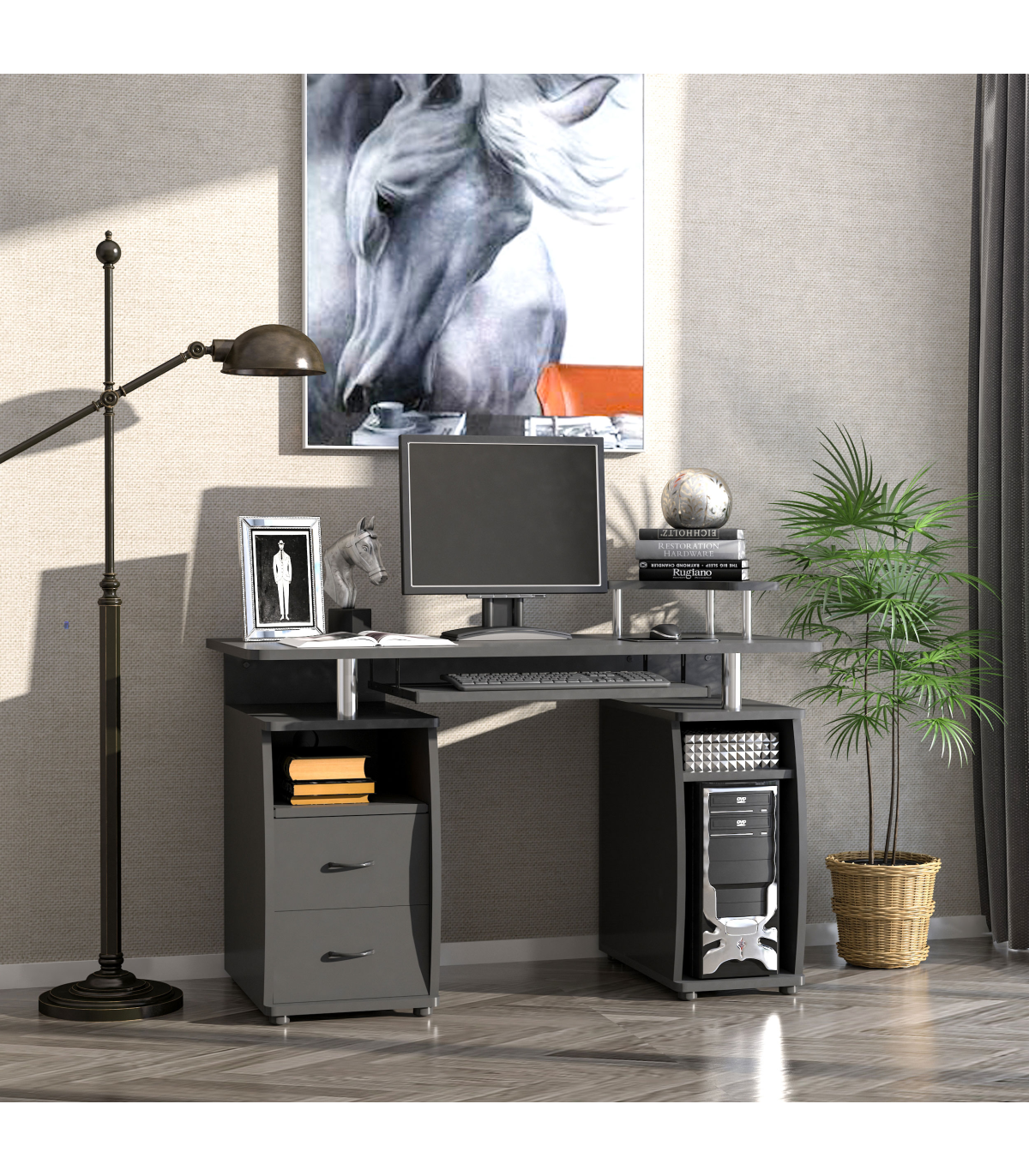 For when an ordinary desk just won't do, then bring this HOMCOM number into the equation. Blending the beautiful with the functional, this piece is made to stand in all different spaces - the bedroom, study, attic and beyond. It features a large tabletop, elevated monitor shelf and keyboard tray, giving you room to keep everything organised and room to work. There's a computer tower holder on the lower right and a two-drawer cabinet on the left, giving you even more room to keep everything together. It's finished with metal handles and feet on the bottom for balance and floor protection.