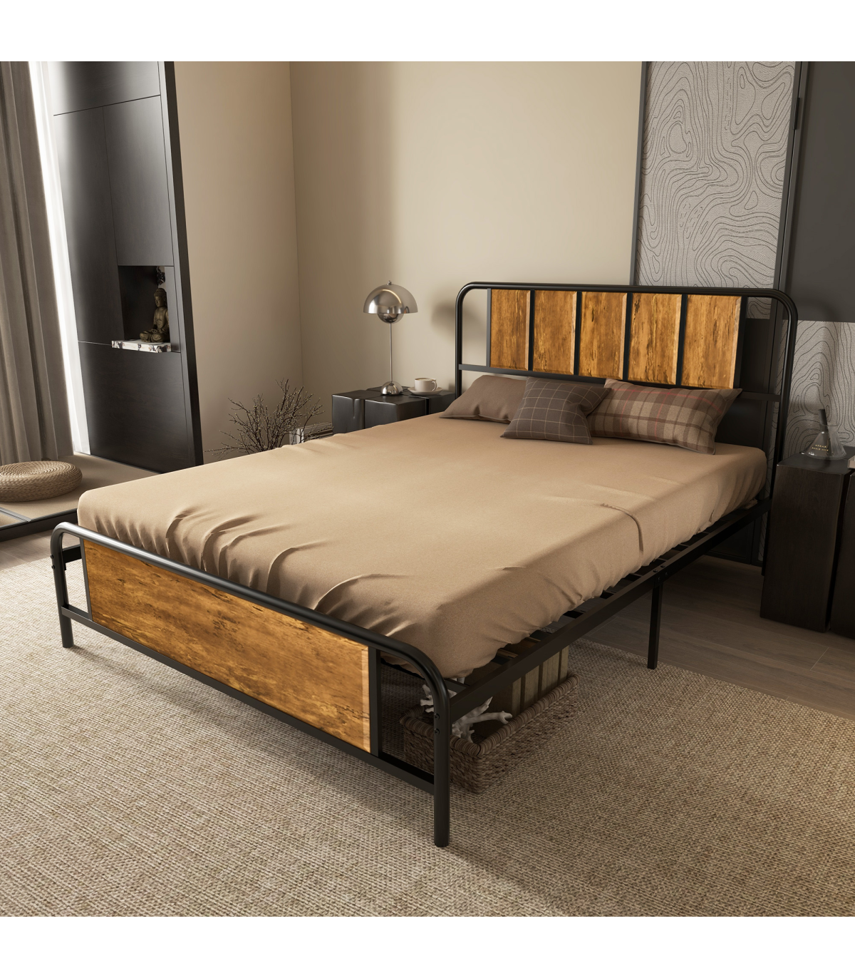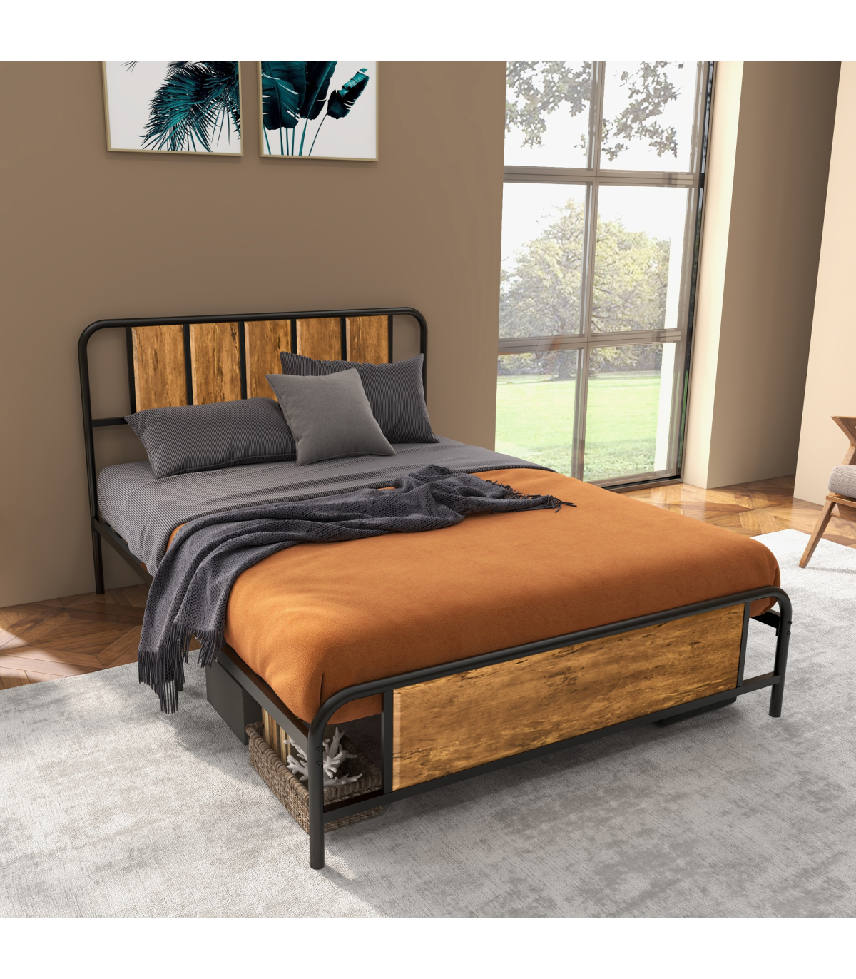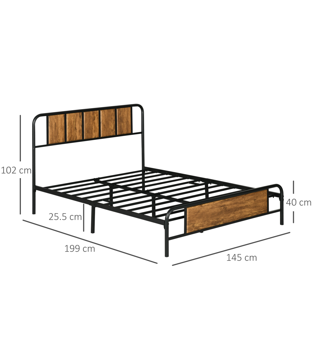Double Bed Frame Steel Bed Base with Headboard 145 x 199cm Brown