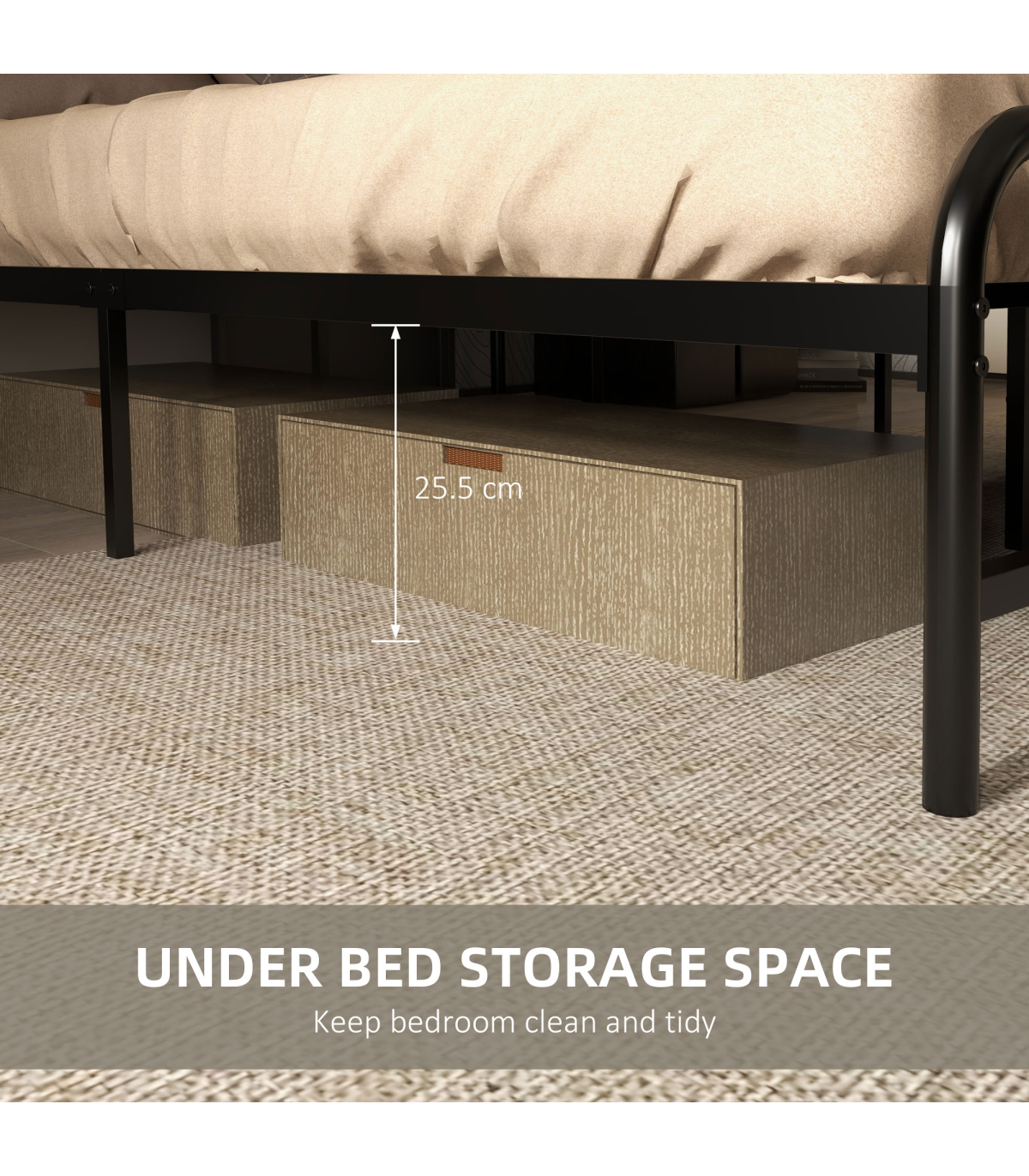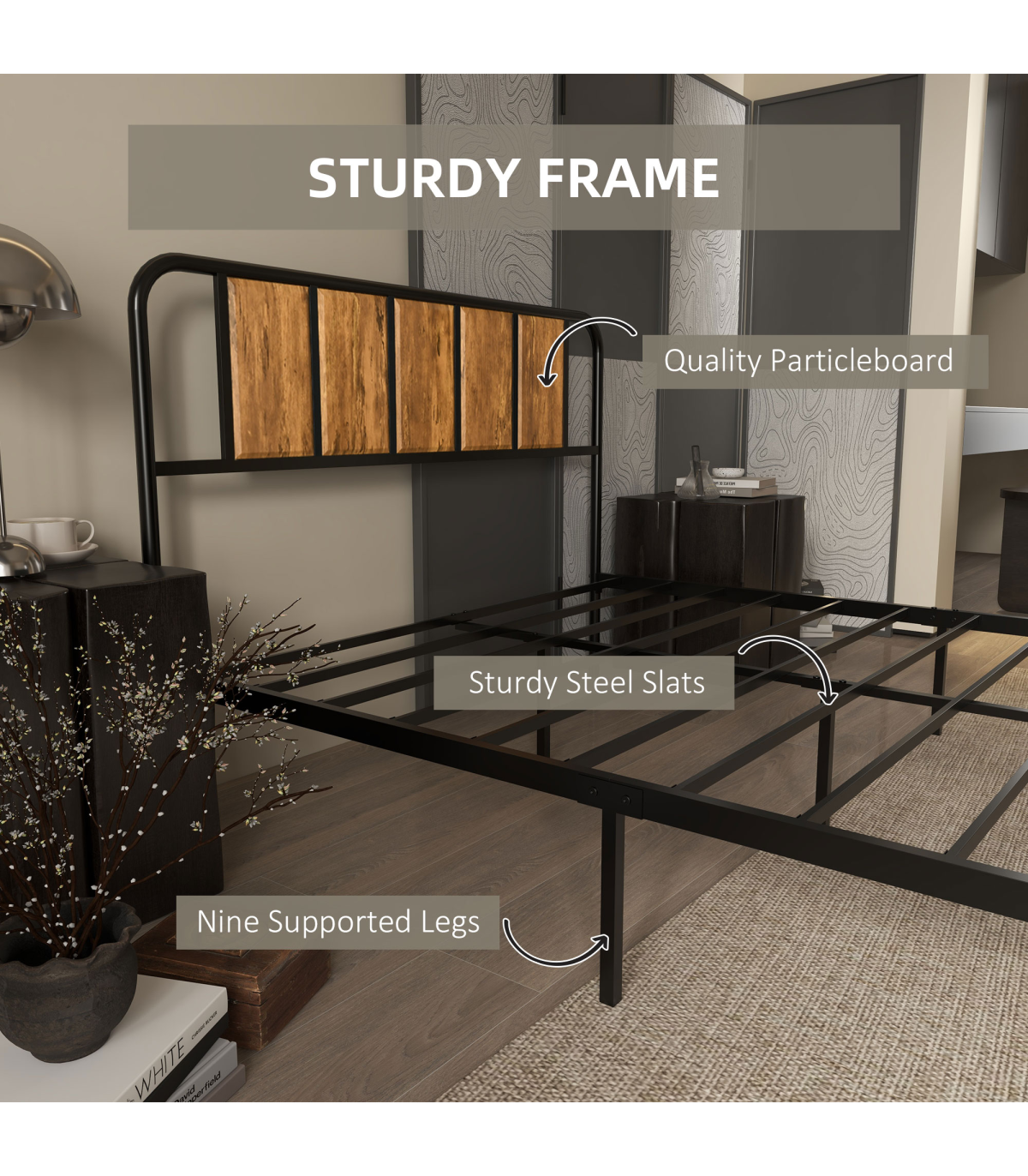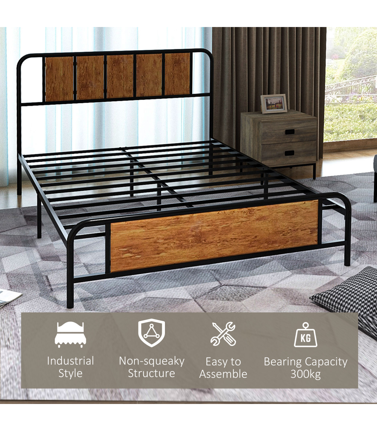 A retro touch for your dream times - this HOMCOM double bed frame. Industrial styling makes it suitable for practically any bedroom space with various interior decors. A steel frame for full support, it comes with nine legs for extra support. The underbed clearance gives room for storage, so you can keep your bedroom tidy.
