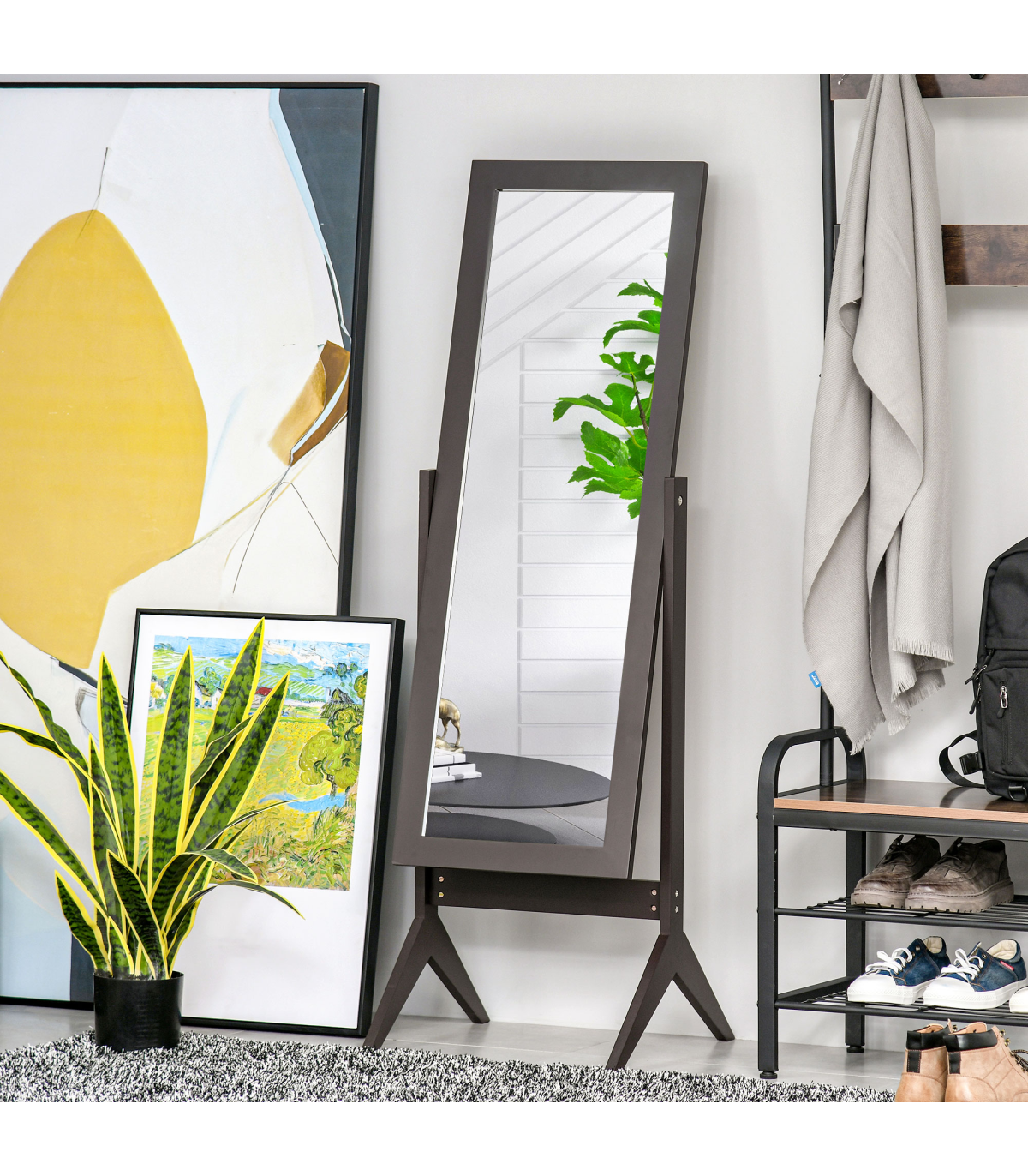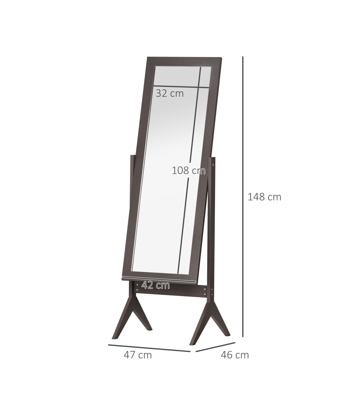 Freestanding Dressing Mirror 148x47cm Adjustable Angle Dark Brown Frame