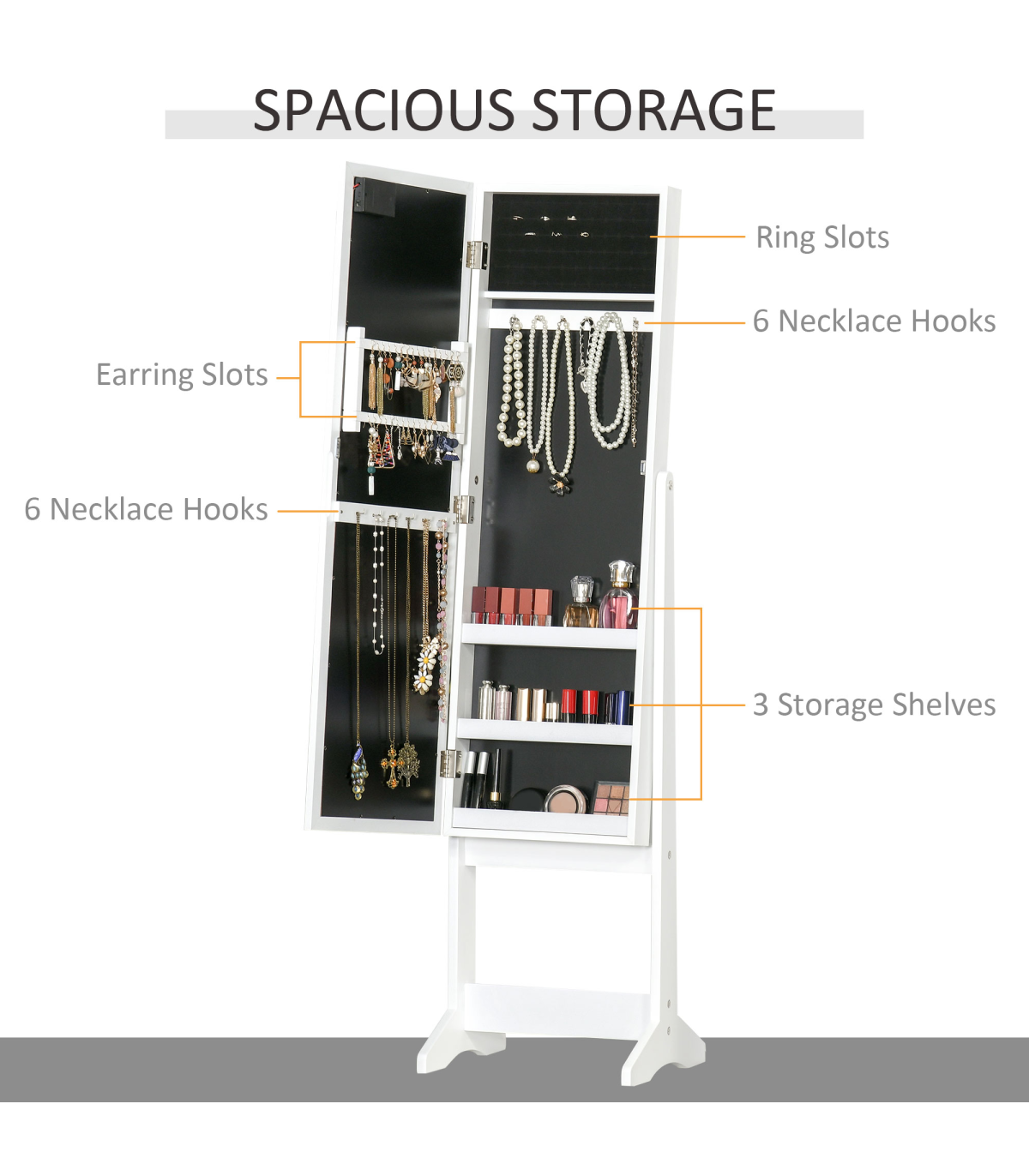 Extensive storage space for all your jewellery, makeup and other items