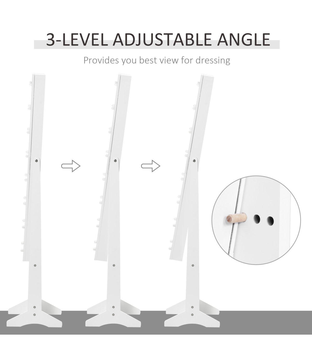 3-Level angle adjustable full-length mirror, provides you best view for dressing