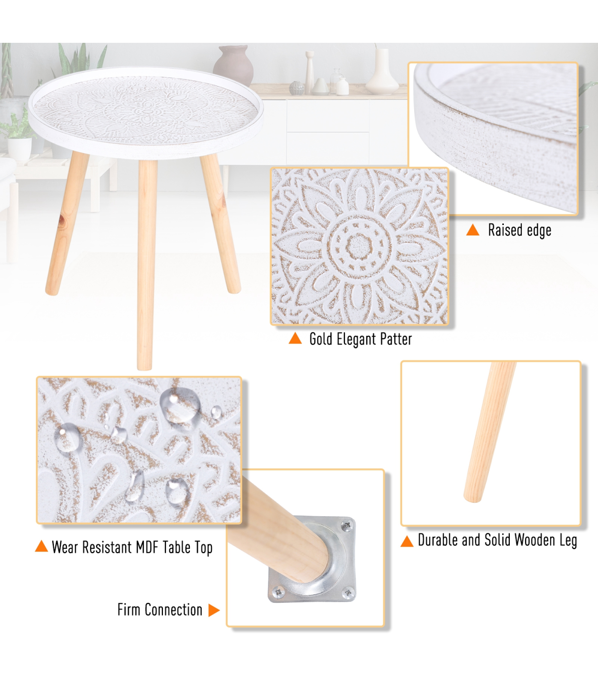 Raised edge on the MDF table prevents books, flowers, magazines etc. slipping off the edge