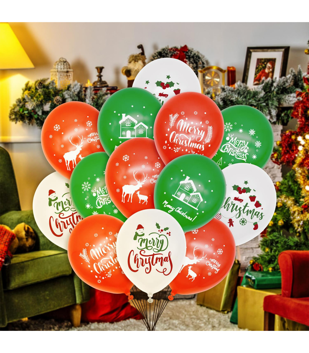 PACKAGE INCLUDES: This package includes Green 12” Latex Balloons, Red 12” Latex Balloons, White 12” Latex Balloons, with 6 different festive prints. Plenty of balloons to make your Christmas decoration complete.
