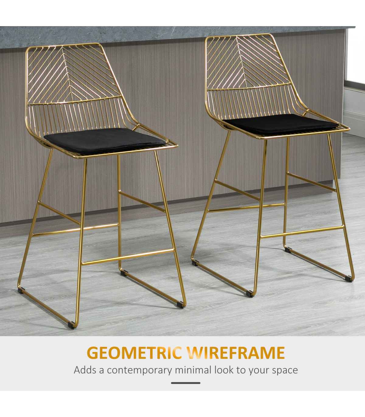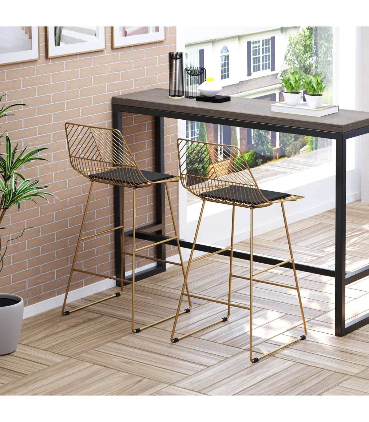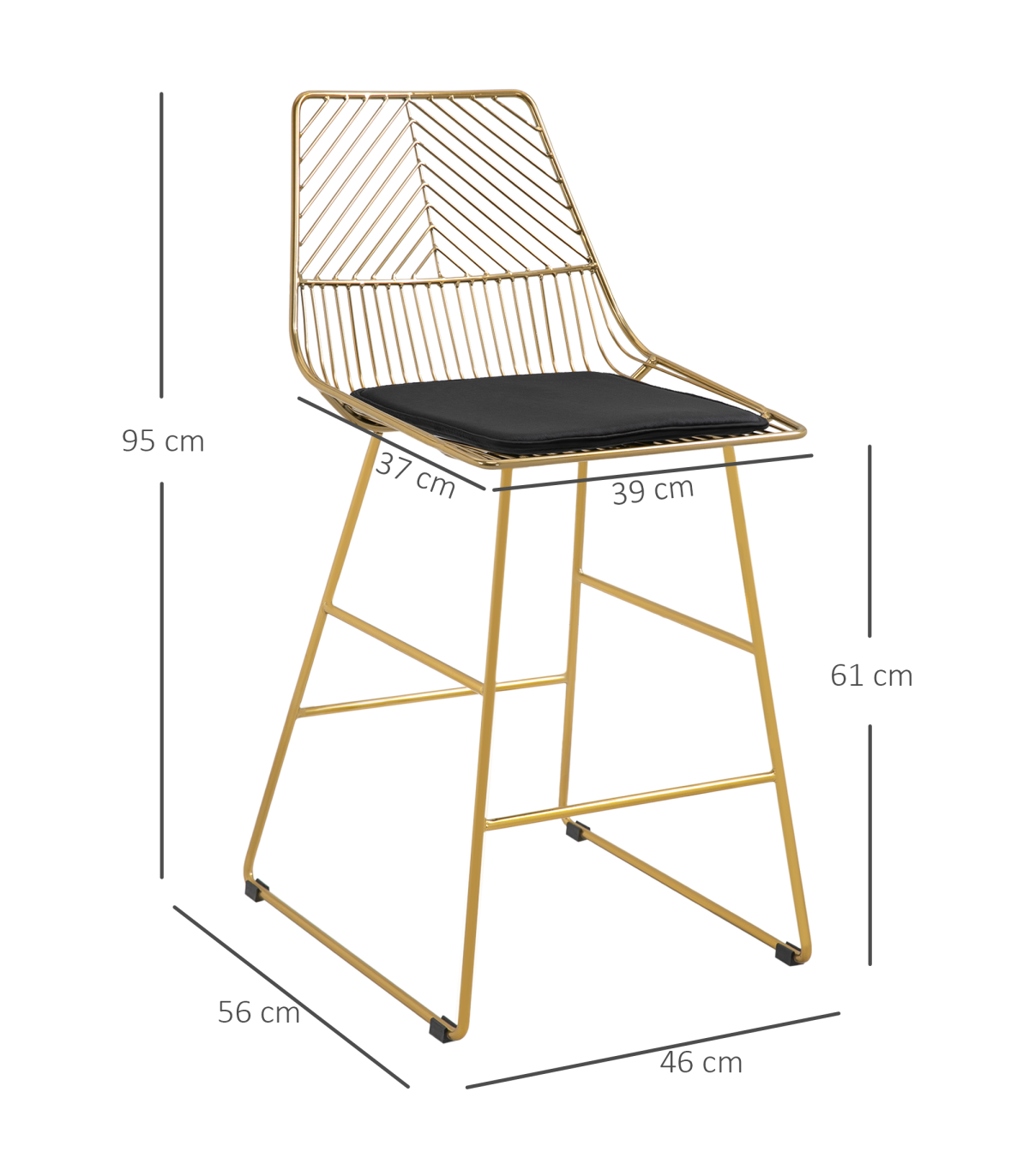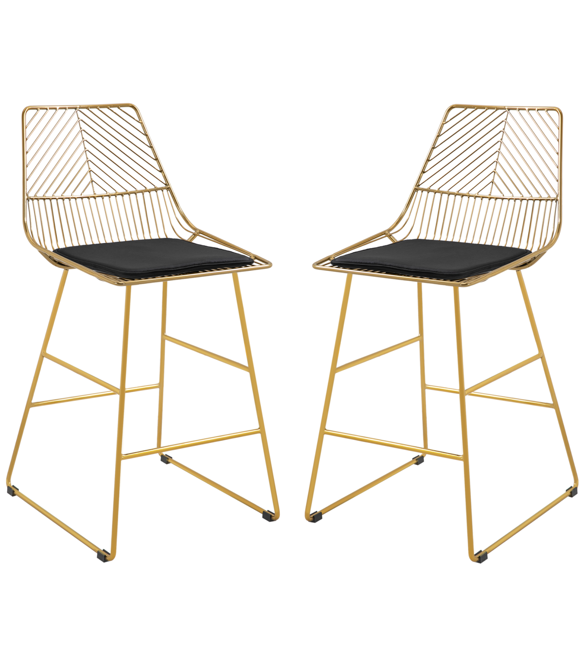 Modern Counter Height Bar Stools Set of 2 pcs Wire Metal Barstools for Kitchen