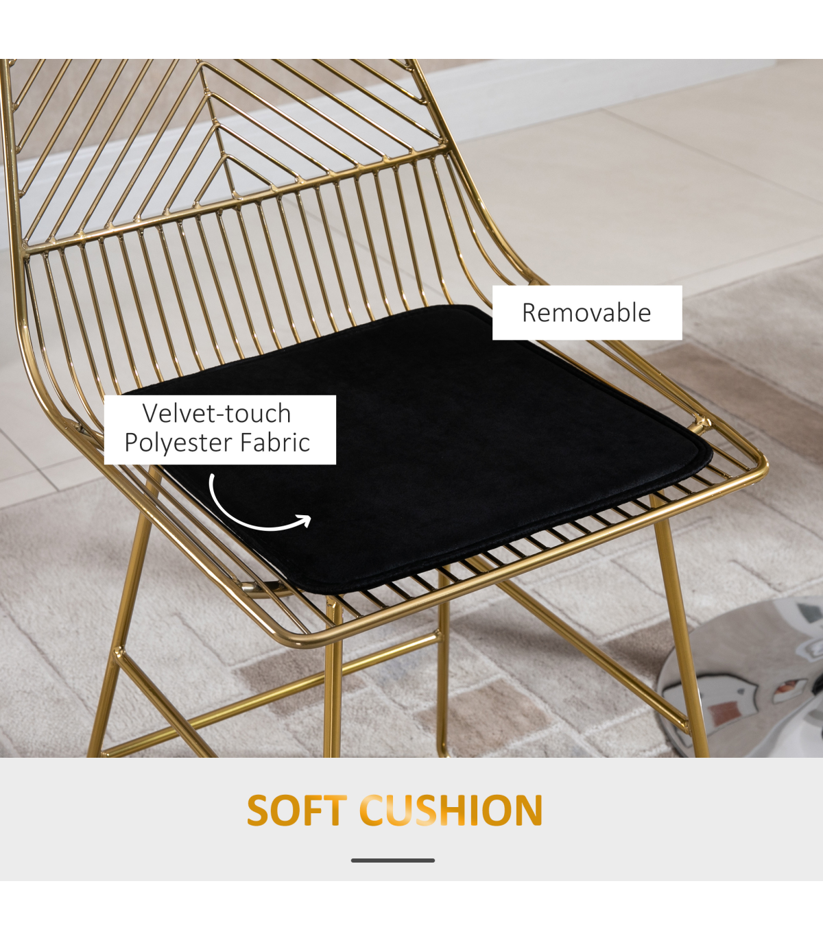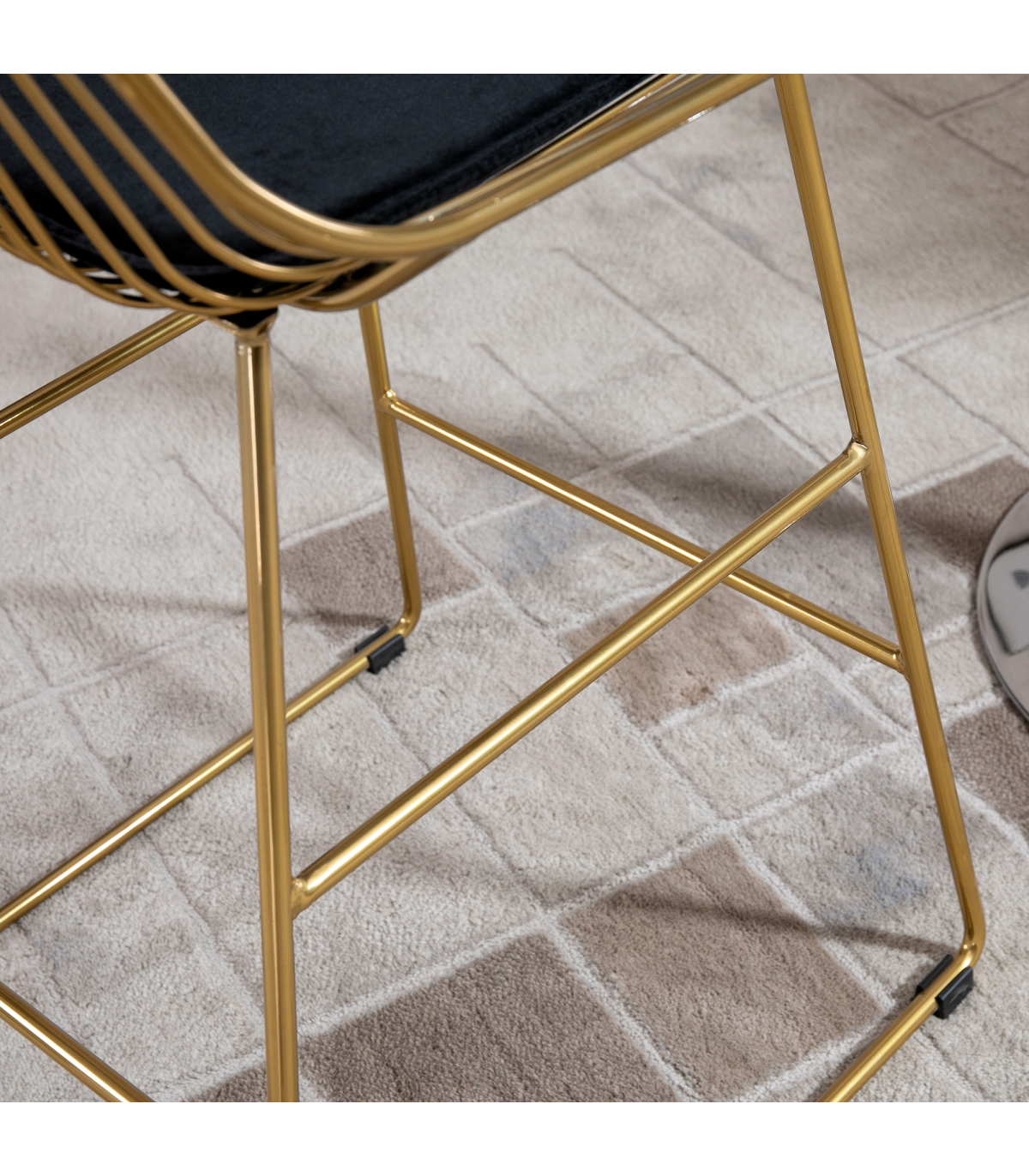 Cool, cut-out design: Geometric pattern is striking, with the armless seats and boxy base for a sophisticated edge. Something different for your home and dining spots.Removable seat cushions: Keeping you comfortable as you sit. Velvet-feel covers are soft and adds a touch of glamour.Steel frames: A solid and durable core which supports you properly when seated. Bottom bar to hold feet.Set of two: Use these two tall stools together for a matching look, or separate across the home.Dimensions: 95H x 46W x 56Dcm. Seat: 39-46W x 37Dcm. Seat to floor: 61cm. Maximum load 120kg. Assembly required.