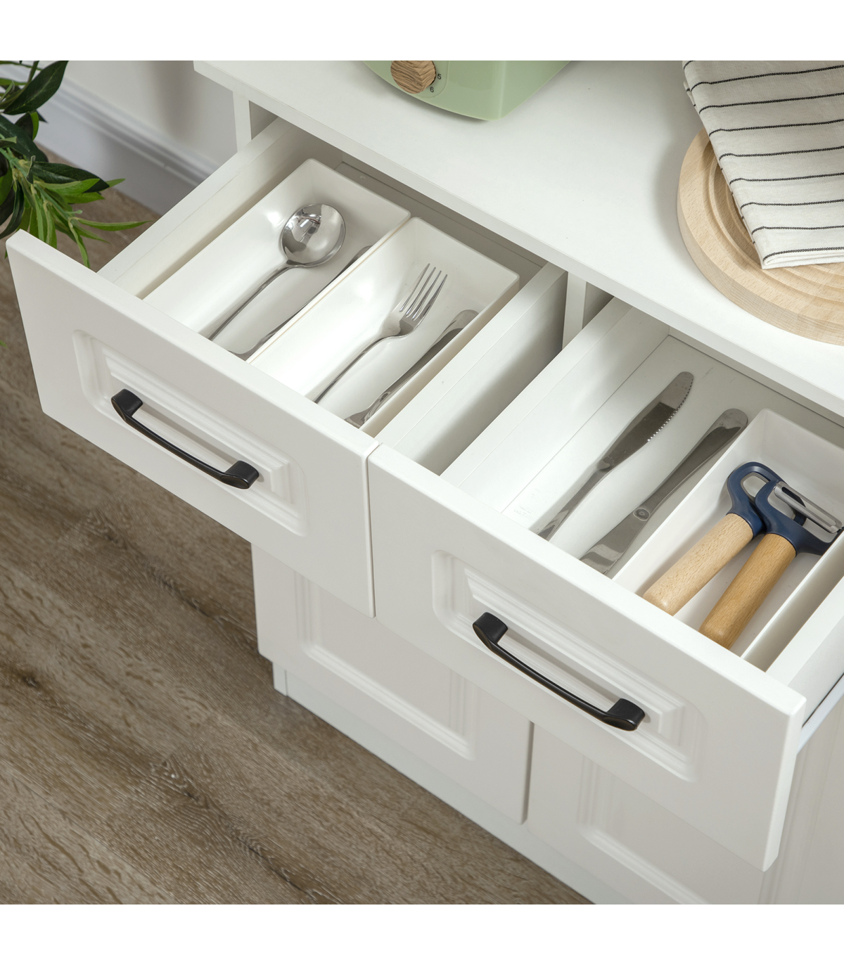 168cm Kitchen Cupboard Storage Cabinet w/ Shelves & Drawers,Open Counter White