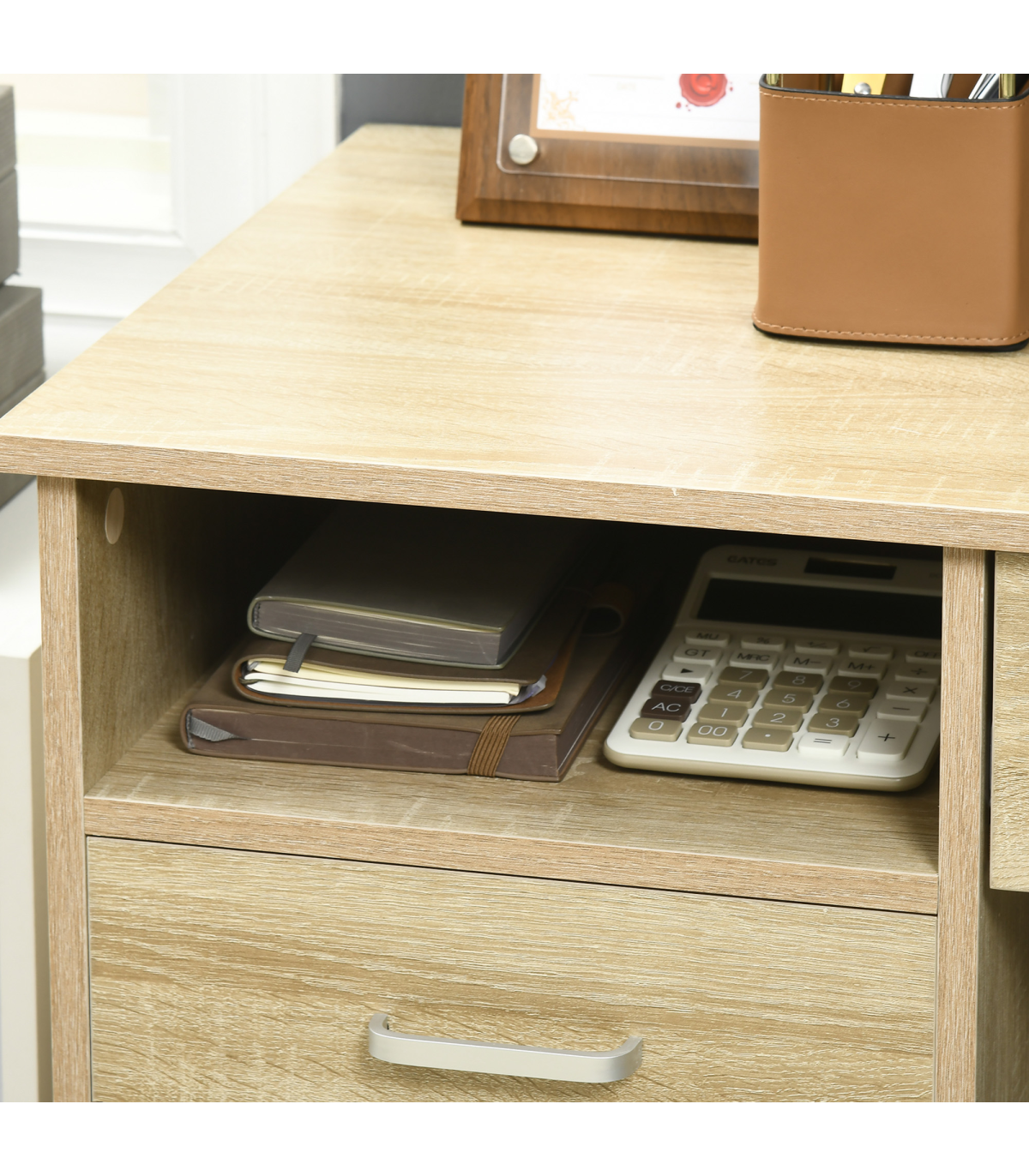 Computer Desk Writing Desk with Five Drawers for Home Office Oak