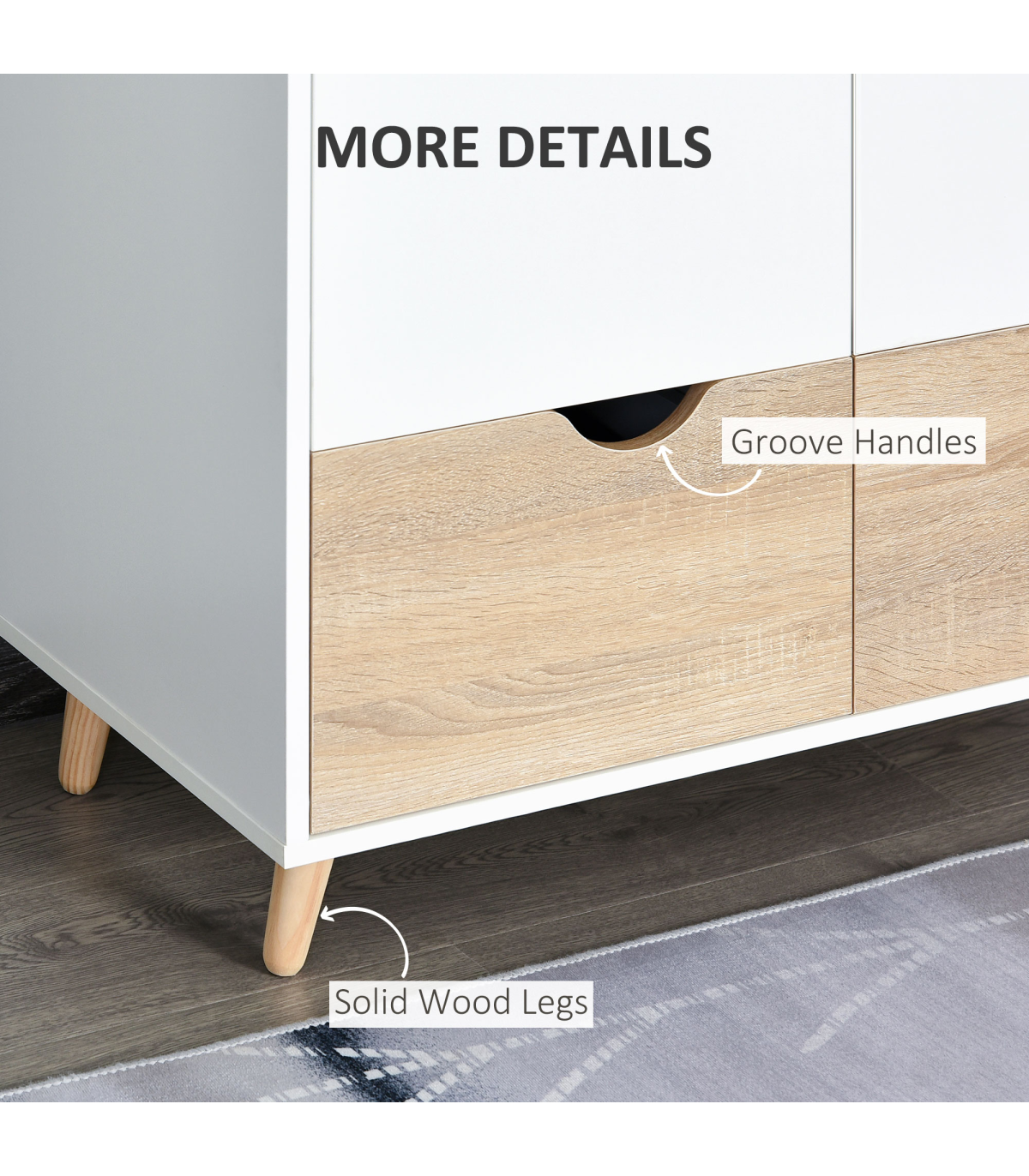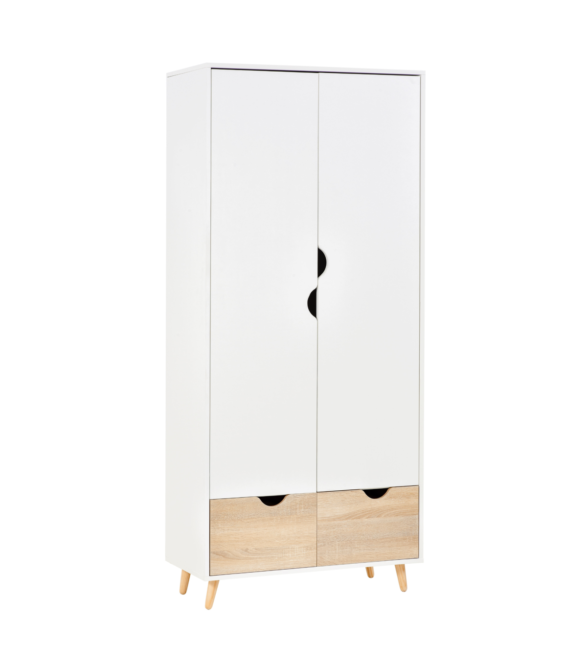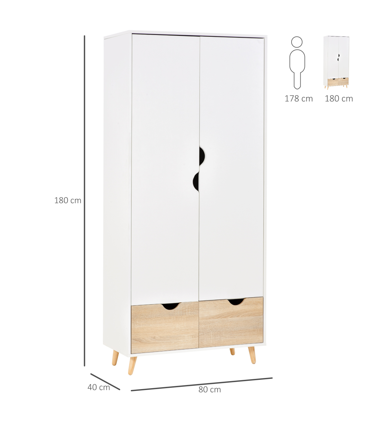 Design features the main compartment with metal clothes rod and shelf, with bottom two slide-out drawers for extra storage