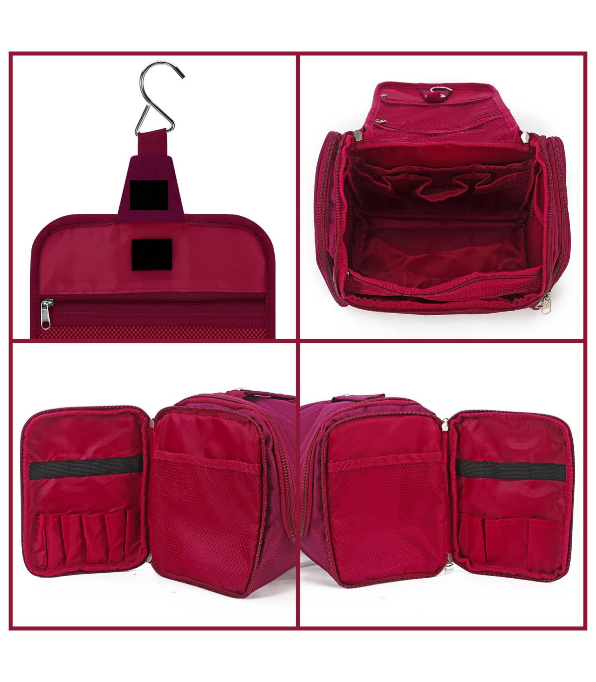 TRAVEL EASIER: Organising your travel essentials has never been easier! Each of your items is plainly ordered and visible in this toiletry bag, ensuring that you'll able to locate your stuff in seconds rather than digging personal items through a jumble. Suitable for road hauls or family vacations, camping, gym session, business trips, hiking, and other uses CONVENIENT DESIGN: With a reinforced double-stitched handle, two zippers, and a hook that works fantastically on your bathroom or other places, this toiletry bag offers the most practical design and plenty of space for your essentials. All of your essential toiletries can be neatly stored in multiple compartments with functional mesh pockets and elastic loops without taking up a lot of room in your luggage. SAVES SPACE: Saves space with these bag that has an internal space that holds all your makeup and toiletries making packing and unpacking a breeze. They can be squeezed into the luggage organiser for bags to save room and since this can be compacted, they are incredibly light without adding weight to your baggage. MULTI-USE: These toiletry bags are perfect for organising and storing a variety of items, including cosmetics, toiletries, and charging cords for electronics. It can also be used as gear bag, wash bag, bath organiser, bathroom bag, shaving bag, convenience kit, travel kit bag, hygiene kit, and other similar purposes. PREMIUM QUALITY: High-quality nylon fabric that are durable, washable, waterproof, moisture-proof and dustproof. Each bag measures 15 x 28 x 20 cm (5.9 x 11 x 7.9in). Available in 8 colors: Navy, Hot Pink, Black, Blue, Dark Grey, Light Grey, Pink, and Purple.
