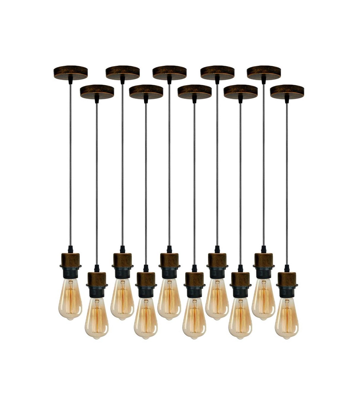 10 Pack Industrial Brushed Copper Pendant Light, Lampshade Addable E27 Lamp Holder Light