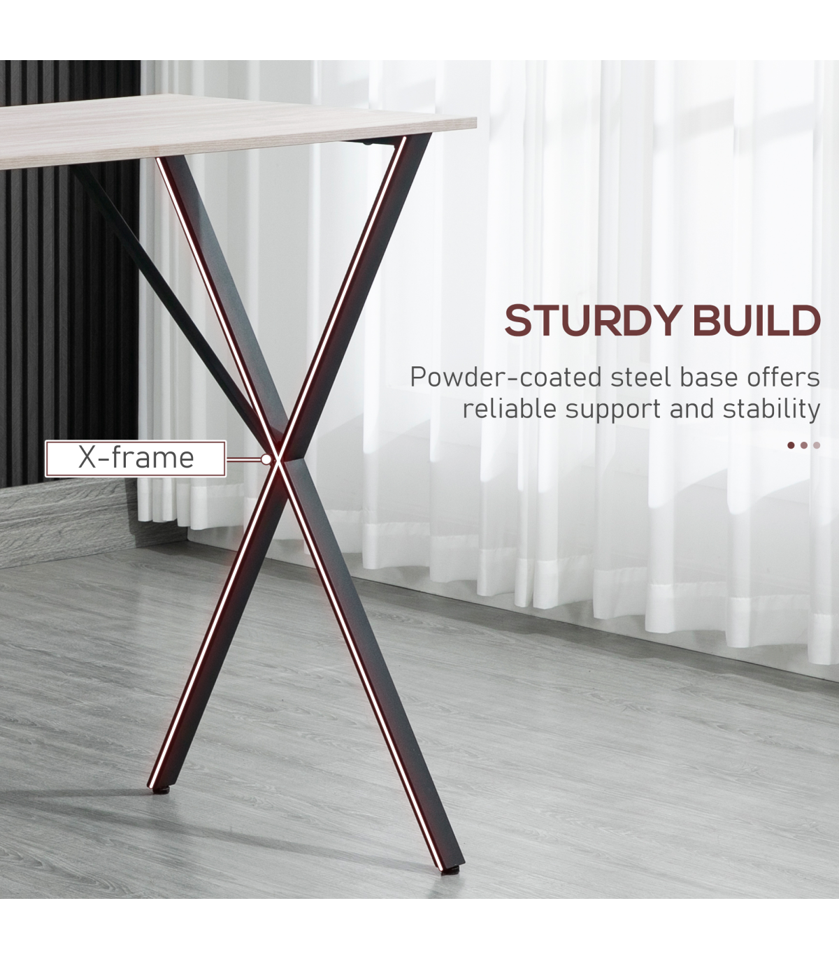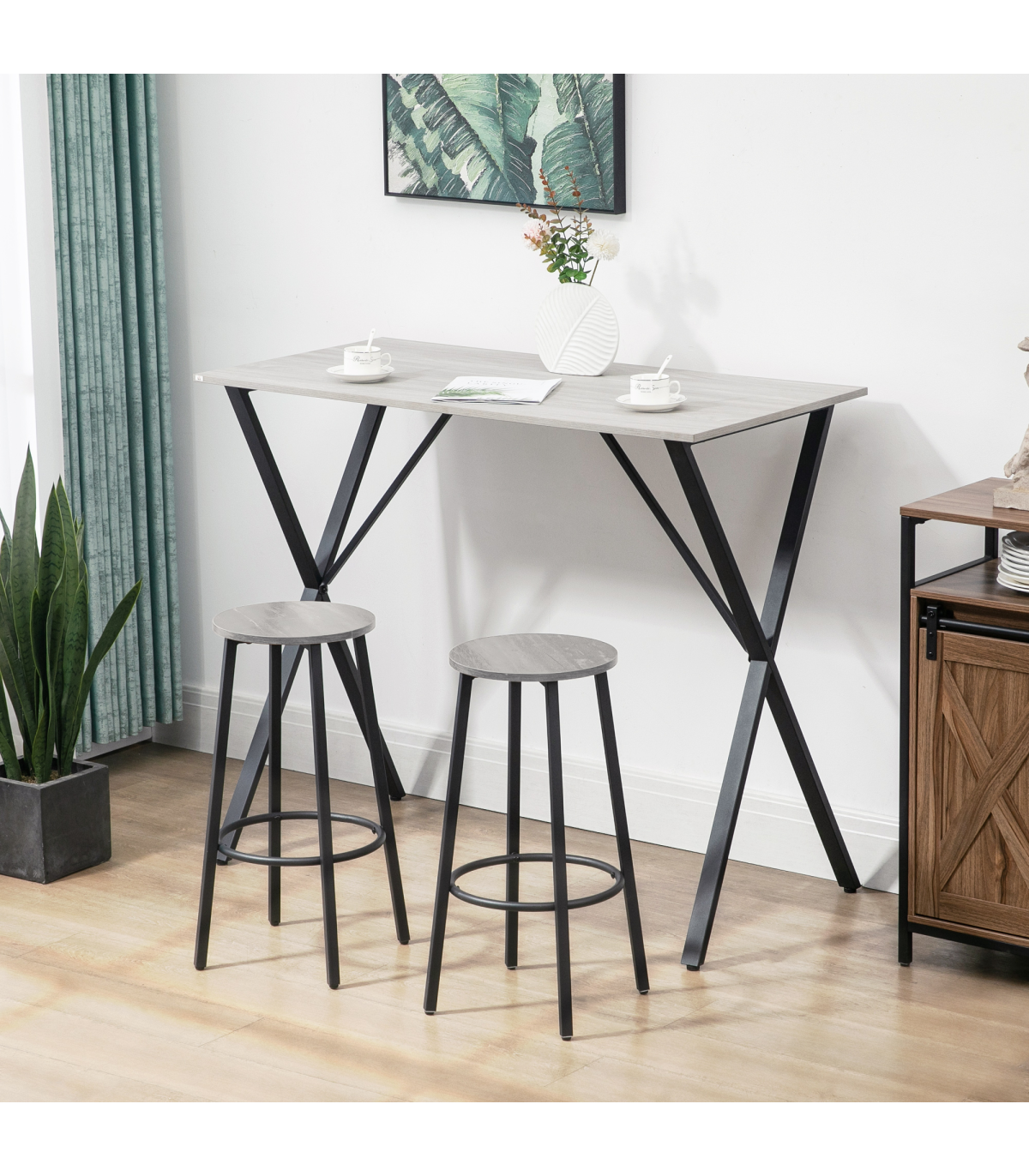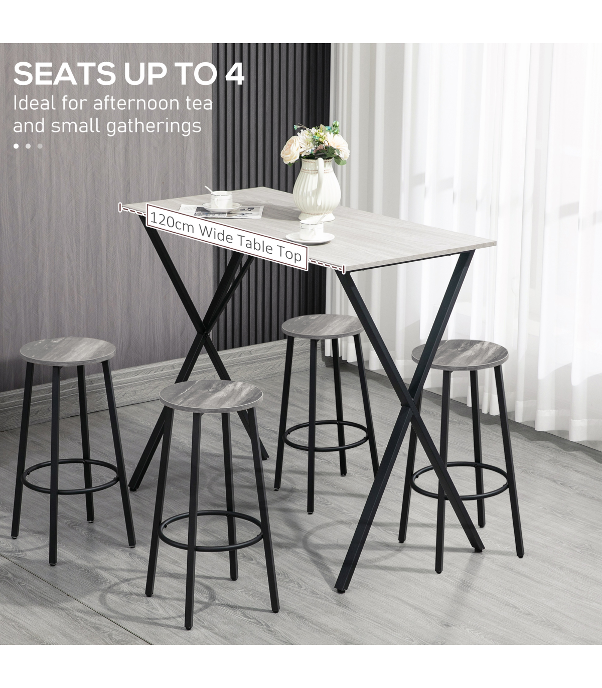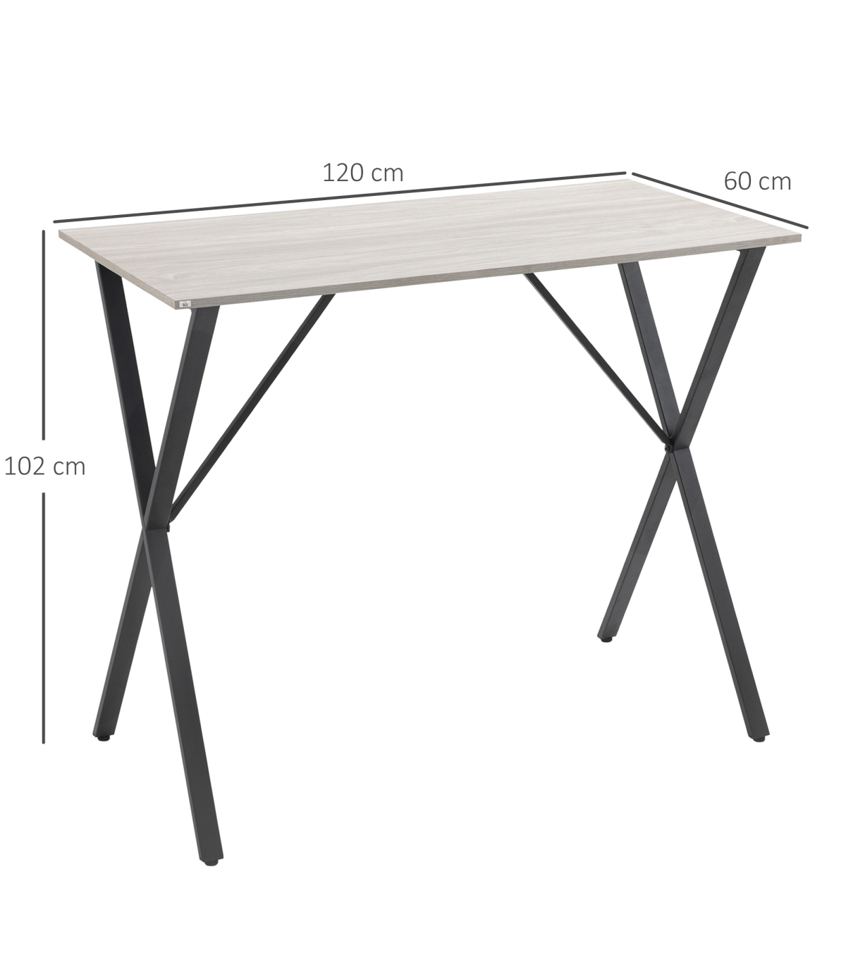 Four-seater bar table: A place to bring people together, day and night. Great for meals, drinks, playing games together and more.Simple design: Breakfast bar table has a light wood-effect table top, with a black frame - neutral colouring is versatile.Steel frame: Powder coated for extra strength, making it a supportive core.Adjustable feet: Keep this table balanced and steady, even when ground is unsteady.Dimensions: 120W x 60D x 102Hcm. Maximum load 60kg. Suitable for bar stools around 67-77Hcm. Assembly required.