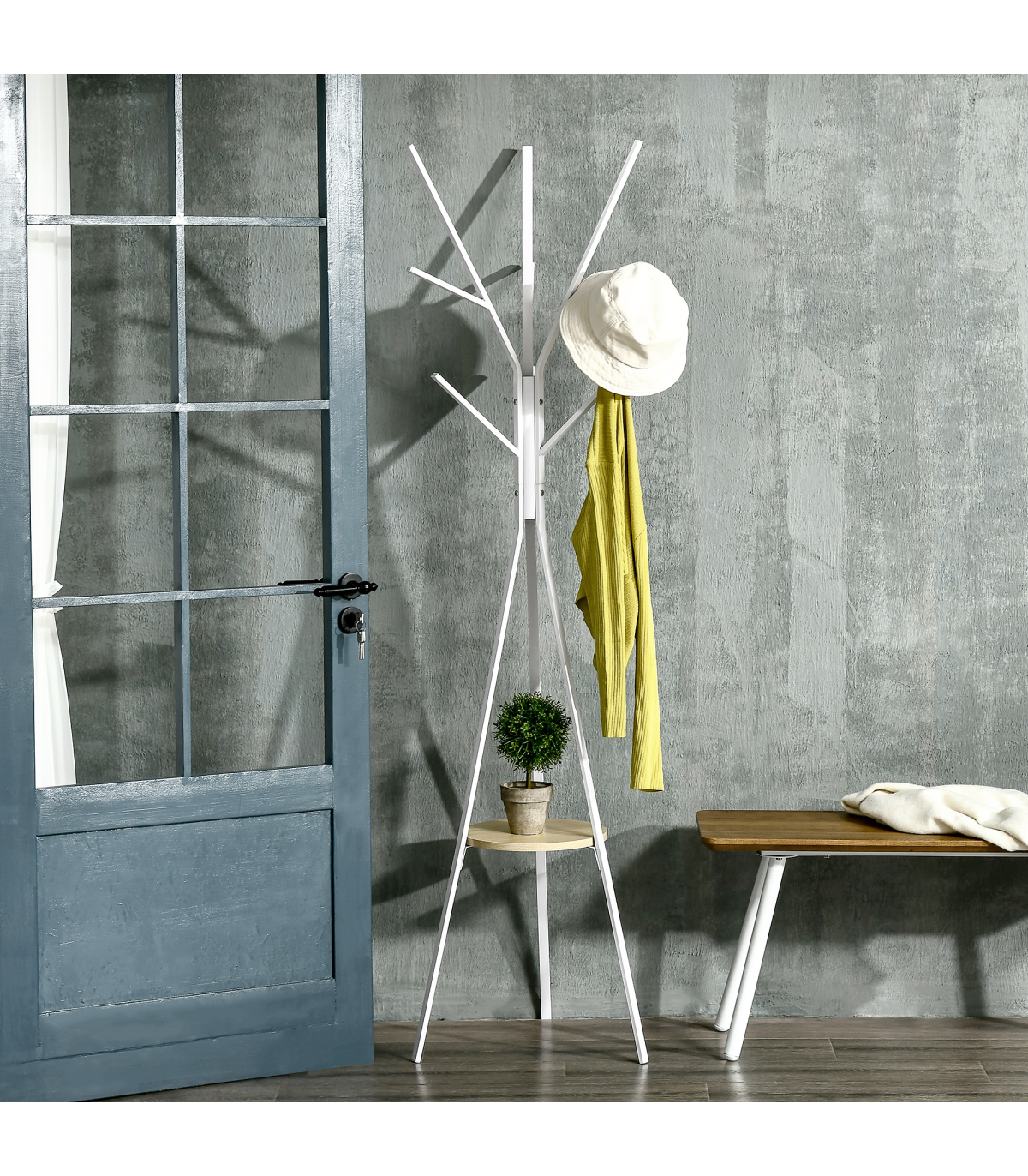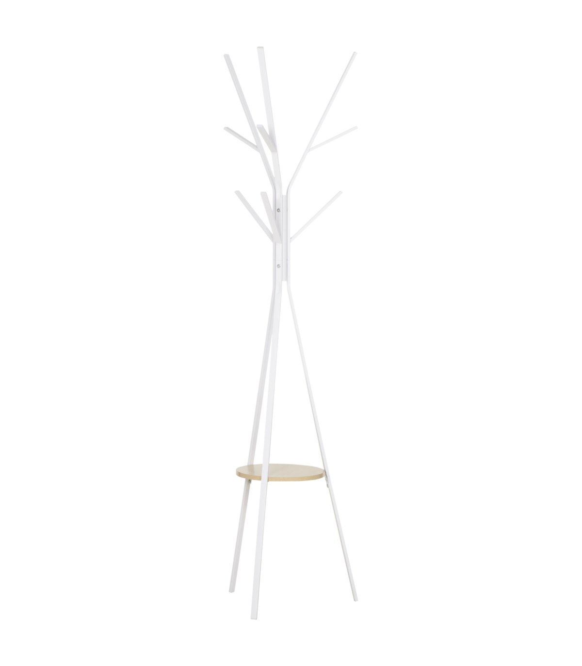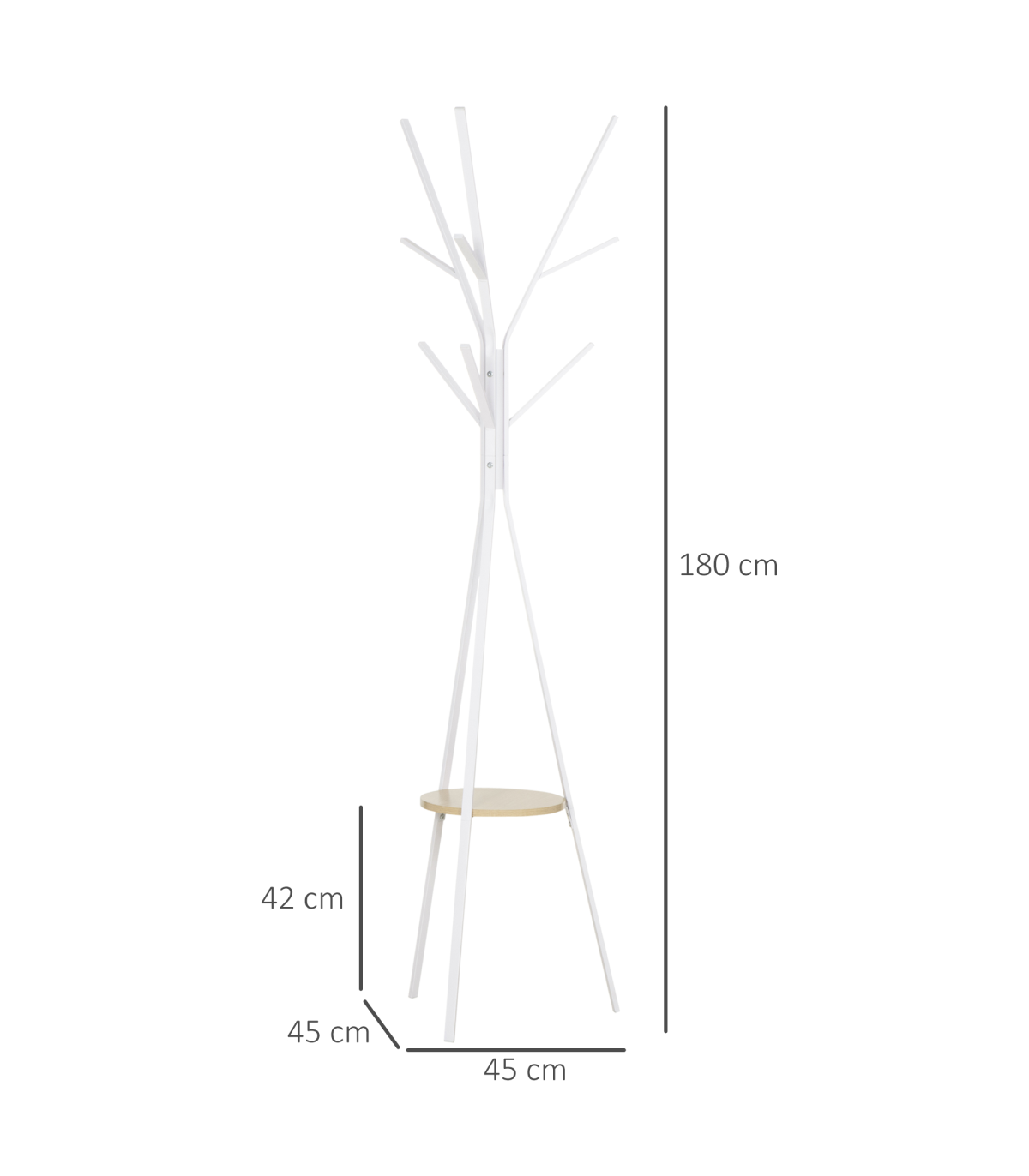 - "180cm Coat Rack Metal Clothes and Scarves Hat Hanger Hall Tree 9 Hooks - White" Description: - Tree Branch design coat rack, ideal for living room, bedroom, entryway, and more - 3 main branches with 9 hooks for coats, handbags, scarves, jackets, and more - The bottom circle shelf can store bins, toys, and flowerpot as you prefer - Crafted of a durable metal frame and thick fiberboard with a triangular base for added stability - End hook caps perfectly protect your clothing and hats - Stoving varnish finish on the surface makes the coat rack water-proof, rust-proof, and easy to clean - Assembly Required