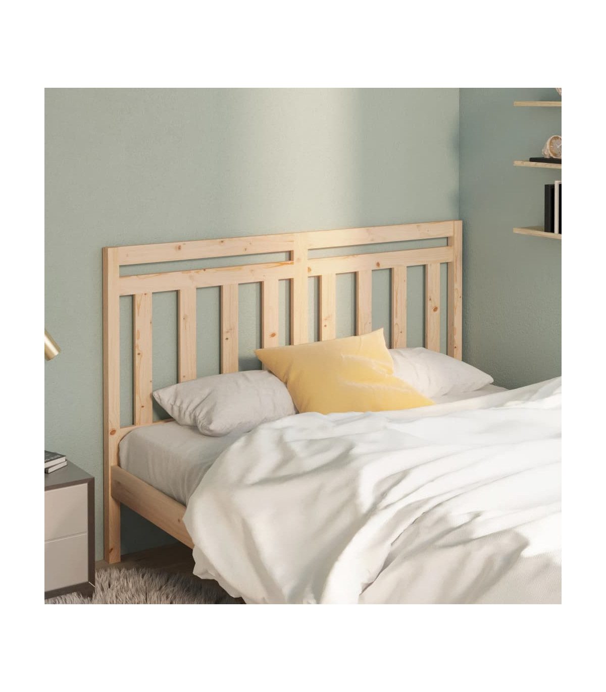 With fashionable design, this wooden bed headboard gives your bed frame a complete look and will suit any bedroom. Fancy outlook: The stylish colour and design of the headboard could easily blend into your interior.Premium material: Solid pine wood is a beautiful natural material. Treat the surface with oil, wax, lacquer, or a glazing finish for a stronger surface and easy cleaning. Pine wood has a straight grain, and the knots give the material its signature, rustic look.Applicable bed types: The headboard is used for beds without headboard.